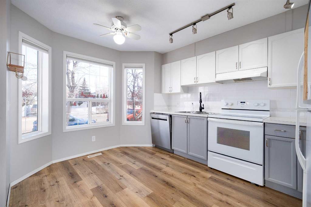 FIRST-TIME HOME BUYERS OR INVESTORS This townhouse is for you! As you walk in you will notice the updated kitchen, vinyl flooring throughout the main floor, and an abundance of natural light. The kitchen boasts a large bay window that highlights the playground across the street. The living room is bright and large with a clear view of the Wheatland Elementary soccer field. Watch your kids play at the playground while cooking dinner or playing soccer in the back. What is not to love about this location? The basement is unfinished and awaits your final touches. Laundry is downstairs as well. Upstairs you will find the primary bedroom and 2 additional bedrooms with a 4pc bath to finish it off. The assigned parking stall is right outside the back door! Nearby is an elementary school, junior high, high school, the Strathmore Hospital, a rec center, skate park, rodeo grounds where Strathmore Stampede is hosted, and several playgrounds. This is one of the most affordable 3-bedroom townhomes you will find in a great location. There is a newer dishwasher, a newer washing machine, and updated plumbing (Poly B has all been replaced).