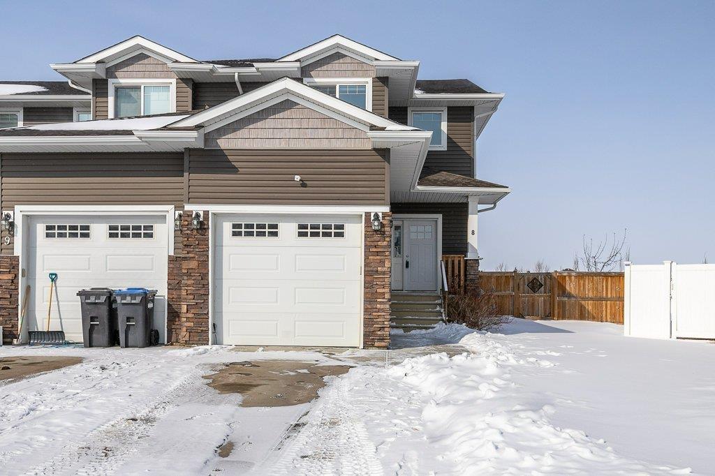 NO CONDO FEE....Spotlight on value! Looking for a house under $320,000 with huge pie lot, extra parking, garage, and backing onto green space, look no further. Enter this end unit to a gracious tiled foyer., to an entertainment sized living room full of extra light from the end unit window. Experience the joy of cooking in this fully-equipped kitchen with pantry, eating bar, black appliances and dining area. Main level also comes with 2 piece washroom. Make your way upstairs to find a master suite with 3 piece ensuite and walk-in dressing closet, 2 more bedrooms and a 4 piece bathroom. The basement is unfinished with electrical mostly done, waiting your finishing touches. Some of the extras are professional blinds, large deck that would be great BBQ"s in the summer. Close to many amenities and walking paths . This home is located in a very desirable area of Sylvan Lake.