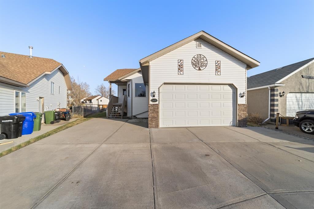 Your search is over and QUICK POSSESSION!! This fantastic BUNGALOW will check all the boxes. Great layout for anyone looking to "resize" with just under 1200 sq ft of well laid out home and, if outdoor living is your thing, this lot is pie shaped and LARGE! You are sure to appreciate many of the things this home has to offer, starting the moment you enter with the good sized entrance that is perfect for all the "hellos & goodbyes". Next, on to the heart of the home...the kitchen, which has a functional layout and has been updated with granite, great cabinets with numerous pull-outs, and most of the appliances have been updated along the way. The dining area is central to both the kitchen and living room making it great for gathering with family and friends. You are sure to enjoy the large south windows that look out onto your massive back yard, complete with raised garden beds, fruit bushes/shrubs. This level is also where you will find the primary bedroom with 3 pce ensuite & walk-in closet, 2nd bedroom, office/flex area, 4 pce bathroom and laundry pair. Downstairs is fully developed with a good sized bedroom, family room with cozy fireplace and wet bar, 3 pce bathroom, plenty of storage, flex space, work shop and large windows. Outside won't disappoint, front drive DOUBLE ATTACHED GARAGE with large concrete apron, a 21' X 29' DETACHED GARAGE that is heated, built-in work benches and 220V. There is also a graveled parking spot for the RV, with all of this, you are sure to have plenty of room for the trailers, toys and extra parking. Beyond your back fence and across the alley you have a great view of the man made pond and green space, perfect for bird watching and/or enjoying a tranquil moment! This home has it all and is in a desirable mature area of Olds, close to schools and many amenities. To help those ever rising utility bills there has also been extra insulation blown into the attic! Book your showing today, with all this one has to offer, you will be happy you did!