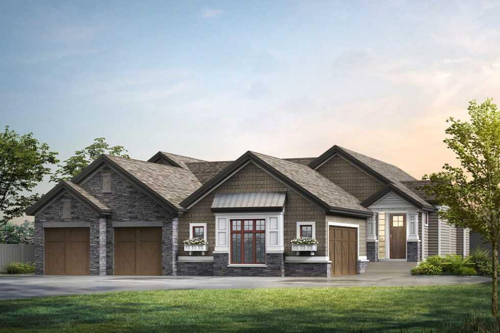 ESCAPE TO THE MOUNTAINS FROM THE LAST UNIT IN SWIFT CREEK. Luxurious villas nestled within a new Lock & Leave community await you on Calgary's esteemed west side. Swift Creek stands as an epitome of convenience, offering an ideal location merely minutes away from the city and just an hour's drive to the majestic mountains. Indulge in an array of amenities with nearby Springbank, Aspen, and Signal Hill shopping districts. The added luxury of easy commuting is enhanced by the proximity to the new ring road. The Cascade model, crafted by HOMES BY AVI, epitomizes opulence and comfort. Spanning nearly 2800 square feet of developed space, this remarkable home boasts a walkout basement showcasing a stunning south-facing facade. Step inside to discover a chef-style kitchen featuring a spacious island, soaring ceilings in the dining and great rooms, a sophisticated main floor office, and ample room for your lifestyle needs. The main floor master bedroom boasts a lavish ensuite, complete with an oversized curbless shower, freestanding tub, and upgraded fixtures throughout. Experience the outdoors year-round on your covered deck with glass railings. The fully finished walkout basement mirrors the premium finishes found upstairs, offering a recreational area, hobby room, and two additional guest bedrooms. This residence includes air conditioning, complete landscaping, and maintenance, including sod in the front and back, along with select greenery at the rear for added privacy. The lot backs onto a berm adorned with trees, ensuring a tranquil setting. Enjoy the covered deck with phantom screens and lighting on the main floor, as well as a covered patio off the basement. Whether you seek bungalow-style living, downsizing, or a seasonal retreat, this location caters to your desires. Take the opportunity to explore the surroundings and schedule a showing today.