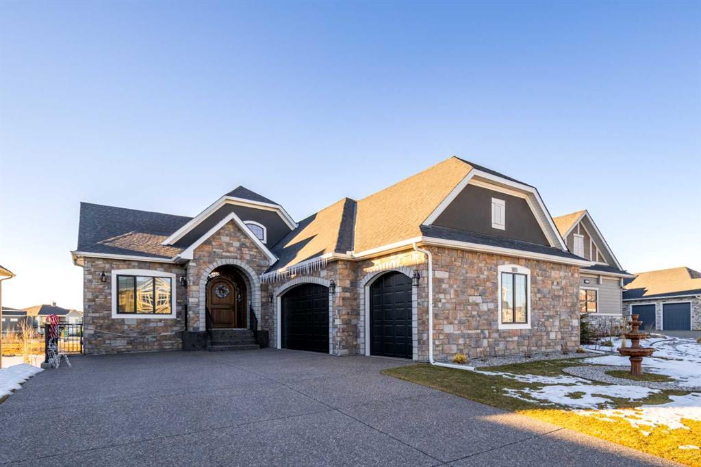Welcome to this fabulous custom-built bungalow in Bayside Estates; a premiere lake community in Airdrie conveniently located just outside of Calgary with everyday access to two walking paths, and numerous modern amenities. Designed and built by Genesis Land a true masterpiece was created. With four bedrooms, four bathrooms, and over 3400 sq. ft. of finished living space including, two bedrooms on the main level, an impressive wine cellar and a lower-level walk-out onto your private lake front property. This superb floorpan is perfect for a large family and is as functional as it is aesthetically beautiful. No expense was spared in this meticulously designed home. The epitome of well thought out space, casual elegance, and an entertainer's dream, this home's main floor alone will invite you in with features including, a brilliant, vaulted ceiling, an elegant chef's dream kitchen, all high-end appliances, black painted oak hardwood flooring, The cozy lounge area in the great room will allow you to enjoy the stunning fireplace all winter long. Feel welcome with a beautiful custom built front door entering into a grand foyer and a main floor office just off of the entrance. This home is all about subdued sophistication. Please note the virtual is available above.