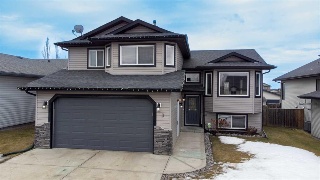 This fully finished modified bi-level is a spacious, well-maintained, original owner home with plenty of attractive features. Close to schools (Beacon Hill Elementary, Mother Teresa Catholic School, Fox Run School, and HJ Cody), grocery & convenience stores, gyms, daycare, Pogadl Park - where you can watch the Sylvan Lake Gulls play in the summer months, and many local restaurants. The five bedrooms and three bathrooms offer ample space for a family, while the new fridge and carpets on the main floor and in the primary bedroom (replaced January 2024) provide a fresh feel. You will be greeted by a spacious entryway with tile floors leading up to the main level of the home. The main floor features an open concept layout with vaulted ceilings and plenty of natural light. In the kitchen you will find a large island with breakfast bar, a corner pantry, and stainless steel appliances. You will also find 2 bedrooms, a full bathroom and a laundry area to finish the space. Upstairs, you will love the 12’ x 16’ primary bedroom that’s large enough for a king bed set, large windows, walk-in closet, and en suite bathroom. Downstairs, you will find 2 more large bedrooms, one with a cozy reading nook! A full bathroom, recreation room and an electric fireplace add a cozy and inviting feeling. The back yard is great for a family, with plenty of yard space including a dog run that is a convenient feature for pet owners. The central vacuum, a/c, and in-floor heat are practical amenities, and the fire pit in the landscaped backyard is perfect for outdoor gatherings. For families with multiple vehicles, the 20’ x 22’ insulated and heated garage will provide plenty of space!