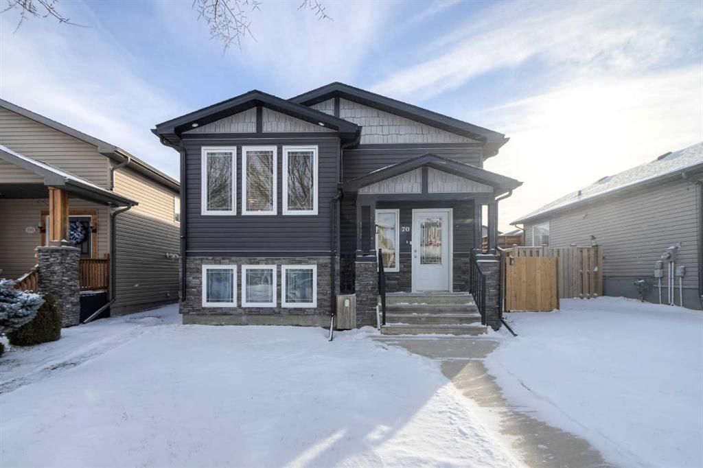 Here is the perfect single family starter home that features beautiful maple woodwork throughout. The home décor experts say wood stain is coming back into 2024 home designs! The choice of finishing's make this feel like a custom home. This home features two bedrooms on the main floor with the primary bedroom having the luxury of a 3 piece ensuite, and includes a private door from the bedroom to the covered deck. The 4 piece main bathroom is a good size too! The kitchen has classy black stained cabinets, and a ton of counterspace with a full size , eating bar for casual meals. A separate pantry in the kitchen gives lots of storage options for small appliances and the groceries. . Enjoy the deck off the back of the kitchen for easy access to the back yard and to the barbecue! The vaulted ceilings add to the design and make the living room feel very spacious. We will call the basement "unspoiled" because you can create whatever design that works for the family. The rough in plumbing is there for the 3rd bathroom and a lot of the electrical rough ins are ready to finish up. The layout is great for the future family room, bedroom or two, separate laundry room & storage. Build your own equity by doing the basement your way and on your time frame. The hot water tank was replaced in April 2018. The backyard has rear parking, a newer fence and a cute back yard. This home is only steps from the Sunridge Park! This home was built to Gold Standard Construction under the Alberta Build Green Program which is an excellent feature in Sunridge Subdivision. Close to shopping, schools, parks, and easy access to University Drive.