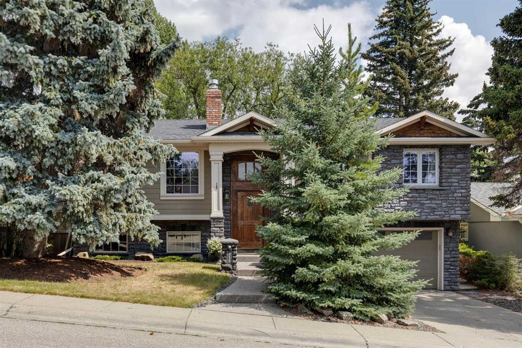 Welcome to this lovely family home where timeless charm meets modern convenience. This captivating, updated split-level bungalow offers limitless possibilities for you and your loved ones. From the moment you arrive, the enchanting exterior, framed by majestic spruce trees, welcomes you with undeniable curb appeal. The warmth of a wood-burning fireplace set against a rustic brick facade invites you into the living room—a sanctuary of coziness for intimate gatherings. Adjacent, the dining room provides a casual yet elegant space for family meals which seamlessly connects to the kitchen, the ideal spot to catch up with your family members at the end of the day while preparing dinner. With gorgeous wooden cabinets and granite countertops the kitchen offers a sense of timelessness. The sunken family room provides a modern farmhouse feel and promises countless memorable moments—whether it's movie marathons, spirited game nights, or simply unwinding after a long day. Retreat to the main floor primary bedroom down the hallway. The ensuite is separated from the bedroom by a dual sided fireplace and contains a bathtub and large shower. Completing the main level are two additional bedrooms and a well-appointed bathroom, offering comfort and convenience for every member of the family. Venture downstairs to the recreation room which features another fireplace and built-in bookcases for your personal library or cherished collectibles. The dedicated office/den offers a tranquil space for work or study. A fourth bedroom and bathroom round out this level, ensuring ample space for guests or extended family. A generous deck is a perfect place for family barbecues or enjoying morning coffee in the east facing backyard. Indulge your green thumb in the garden oasis, complete with multiple planters beckoning to gardening enthusiasts, while a row of trees provides an extra layer of privacy. Nestled at the back of the house, a double detached garage offers ample space for parking, with a convenient pathway leading up to the mudroom, that sits next to the kitchen. A single attached garage is also available at the front of the property. In this family-centric community, you'll find everything you need nearby. With three schools just a few streets away, tennis and basketball courts at the Sportsplex, and the expansive Nose Hill off-leash dog park for furry friends, there's something for everyone. Plus, the close proximity to the LRT makes commuting a breeze, whether you're headed to the University or off to work. Don't miss the opportunity to make this dream home yours—a sanctuary where timeless charm meets modern luxury, creating memories to last a lifetime.