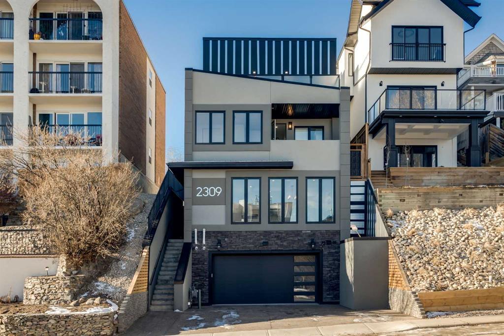 This High End Home was Built Into a Hillside in Bankview - With over 3400 sqft of meticulously Finished Space Across 5-Levels, Incredible Views of Downtown, a 1180 sqft of outdoor living area inclusive of a large Roof Top Terrace, and multiple finished patios, this home IS Modern Living. Big City architecture vision melded with a rare 32' wide ridge lot creatively generated this distinctive home. 4 bedrooms, 4 1/2 bathrooms. Strict Codes were followed to ensure the HIGHEST quality of build. ICF [insulated concrete foam system], Fortruss floor construction, energy efficiency & low maintenance, heated floors (including your garage!) and Hardwood throughout & glass case stairwells. Huge Windows, 2 patios, a court yard & roof-top terrace embrace nature & offer immense views. Main floor has a flowing floorpan, creating an entertainers dream with dining room, kitchen, huge walk in pantry, a coat room, powder room & rear courtyard. Living room has a gas fireplace clad with rock, surrounded by built in book shelves. The Gourmet kitchen has clean, crisp cabinetry, quartz waterfall island, top end stainless steel appliances including a highly desired gas-cook top. The next level has 3 bedrooms(2 with walk-in closets), 3rd with organizer, 2 full bathrooms. This level is completed with a large Laundry room, equipped with a sink and tons of storage, with views of the city and access to your balcony. Ascend to the full floor primary suite. This space is a haven with fireplace, private city-view balcony, a den with wet-bar that could be used for a Work From Home Space, or maybe even a Peloton Room! The walk-in closet, is equipped with built-ins, that will make your friends green with envy! Keep going down your bedroom hallway, and you’ll find a spa-like 5-pc ensuite, 6-jet steam shower with skylight, free standing tub, washer & dryer, private water-closet. This bedroom is the epitome of a SUITE. Step up to another world of living on the grand rooftop terrace, with hot cold/water & gas jet & panoramic views. Sit back, relax, and entertain. On the lowest level, you have a conveniently placed full Bathroom next to the Garage Access, and this space, with wet bar rough in, could make a great Rec Room, Workout Room, or Work From Home Space- the choices are unlimited! The home is nestled on a classic tree-lined inner city street & steps to major park. Many high-end builds in the area. Walkability to bistros, boutiques & services in Marda Loop & c-SPACE King Edward. A dash to Downtown. This Home Combines Large Luxury Living With Lock and Leave Convenience.
