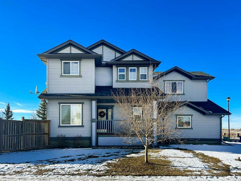 You wanted a BIG 23 1/2 x 22 1/2 attached garage with a BIG home on a BIG lot with QUICK possession and NEW Shingles? You've found it! Here it is a beautifully maintained home located on quiet cul-de-sac street and Brander Ave. Perfectly located on a corner lot with plenty of room for RV parking! Welcoming covered porch leads way to the beautiful front door & spacious foyer with a closet for coats & shoes. Main floor has an open concept great room with corner fireplace, dining area with French doors leading to the impressive back deck and kitchen with eating bar & island. Kitchen also includes granite countertops, decorative backsplash, stainless steel appliances, dark stained maple cabinets offering plenty of storage, AND a full walk-in corner pantry. Off the kitchen you’ll conveniently find the mudroom which leads way to the oversize double attached garage. In addition the main floor has a good size separate office/ flex room and 2pc guest bathroom. Up the staircase with high ceilings and tall bay windows letting in plenty of natural lights, you’ll find the family room with vaulted ceilings. Modern Master bedroom has a large walk thru closet and ensuite with oversized 5 pc bath that includes his and her sinks, separate glass shower and separate vanity. The upper floor also includes 2 additional bedrooms, full 4pc bathroom and good size laundry offering storage space. Heading outside, you’ll find the deck off the dining room extends almost the full width of the house providing plenty of room for entertaining in your south facing, fully fenced huge backyard. Easily within walking distance to the K-9 school combined with a view of the mountains make this a great family home. Grocery Store, shops, restaurants nearby and Calgary is only a 15min drive. With over 3000 sqft on 3 levels, this home is the total package and a rare find!