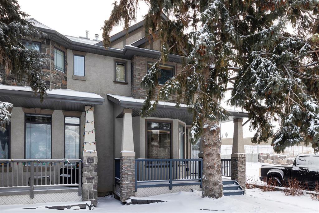 Live the life you love in a luxury semi-detached home situated in a cul-de-sac in the heart of South Calgary. Just 2 blocks from Marda Loop with a coveted location giving you quick access to Crowchild & 50 Ave SW. This home has an inviting stucco & stone façade with a charming front porch. Inside, a welcoming front entry leads way to a den, 2 piece bathroom & open concept living, dining and kitchen space. The kitchen features maple shaker cabinetry, stainless steel appliances, granite countertops, a built-in work station & corner pantry. This level also boasts new bamboo flooring, 9 foot ceilings and a tile surround gas fireplace w/ mantle. The second level reveals a skylight, 4 piece bathroom, laundry room and two bedrooms including a spacious master suite with vaulted ceilings, a built-in bench and a 4 piece ensuite. The basement is fully finished with in-floor heating, a games room/rec room, 4 piece bathroom and additional bedroom, R/I plumbing for bar. Also notable is a patio/deck in the backyard with a gas line as well as a double detached garage. Roof and shingles replaced on garage and house in 2014, Hot water tank replaced in 2019, Fridge, Dishwasher, Washer/ Dryer and Range replaced between 2018-2020. New kitchen sink in 2020. Humidifier 2024. Entire home has been freshly paint and LED lights installed throughout. Close proximity to schools, playgrounds, basketball court, and community rink. Only steps from the shops and restaurants of Marda Loop & a quick commute to Downtown. Immediate possession. Live the life you love!