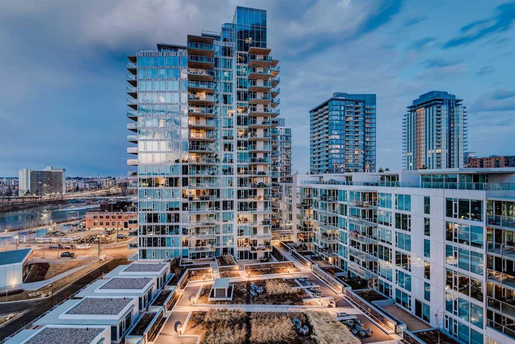 BEST VIEWS of the RIVER from this fabulous 2 Bedroom+DEN suite by Bosa Development. This NE corner suite features floor to ceiling windows, beautiful granite countertops, a chef-inspired kitchen with gas range, and lots of storage. The primary bedroom offers double closets and a luxurious 5-piece ensuite, complete with in-floor heating. A 2nd bedroom, bathroom, and den complete the suite. The large balcony has breathtaking views and offers a gas line for BBQ. This suite comes with AC, a TANDEM parking stall and separate STORAGE LOCKER. Premium amenities include concierge, fitness facility with sauna + steam room, visitor parking, outdoor courtyard and owners lounge. With parks and pathways right outside your door, enjoy the vibrancy and accessibility of East Village. Evolution is steps away from the RiverWalk, LRT, Calgary Public Library, Studio Bell (home of the new National Music Centre), along with many great shops and restaurants such as Phil & Sebastien Coffee, Sidewalk Citizen Bakery, Superstore, Winners and Shoppers. Book your viewing today.