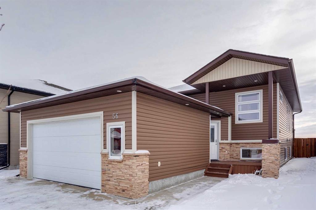 WELL BUILT, WELL KEPT HOME WITH COUNTRYSIDE VIEWS! Located on a quiet street, this 5-BEDROOM, 3-BATHROOM home is the PERFECT FAMILY HOME. Step inside off the welcoming front deck to a large entry with direct access to the double car garage. Just 7 steps up the main floor delivers 1174 sq/ft of living space and includes a well-designed, functional kitchen with BREAKFAST BAR, large PANTRY and laundry. The dining room has plenty of space for a large dining table and the spacious living room has a GAS FIREPLACE for those cozy winter nights and lots of windows that flood the home with NATURAL LIGHT. Vented windows are purposely positioned to allow for a cool breeze to flow through on those warm summer days. The OPEN CONCEPT FLOOR PLAN is ideal for family togetherness and gatherings. You’ll appreciate 3 bedrooms and two full bathrooms on the main floor – or easily convert one bedroom into a HOME OFFICE. The fully finished lower level is host to another 2 large bedrooms, another full bathroom, lots of storage and an ENORMOUS REC ROOM, which sets the stage for a home theatre room (sounds around system is included in the sale), and lots of extra space for a pool table, ping pong table or children’s play area. Popcorn and beverages can be conveniently located in the built in wet bar. The beautiful FRENCH DOORS, INSULATED CEILING and SILENT FLOOR SYSTEM add enhanced acoustics. Larger than typical windows were designed into the lower level creating a bright, sunshine filled space! Exceptional builder Energy Saving Details in this home include: ICF Quad Lock Foundation (providing significant Energy Savings), Goodman High Efficient Furnace (serviced March 2024) and R40 Blown in Ceiling Insultaion. This spacious home with 2423 sq/ft of TOTAL LIVING SPACE has a large SOUTH FACING BACK YARD with a deck and beautiful, unobstructed VIEWS TO THE FARMLAND behind, which is owned by the Alberta Government and leased to Olds College - ensuring this spectacular countryside view will not be interupted with new builds. Across the street from the front of the house sits a large GREEN SPACE with a PLAYGROUND and a storm water pond which is maintained by the city of Lacombe and is used for recreational use. In the winter it is cleared, allowing for ICE SKATING and HOCKEY. Sellers are original owners and have kept great care of this home! Book your showing today!