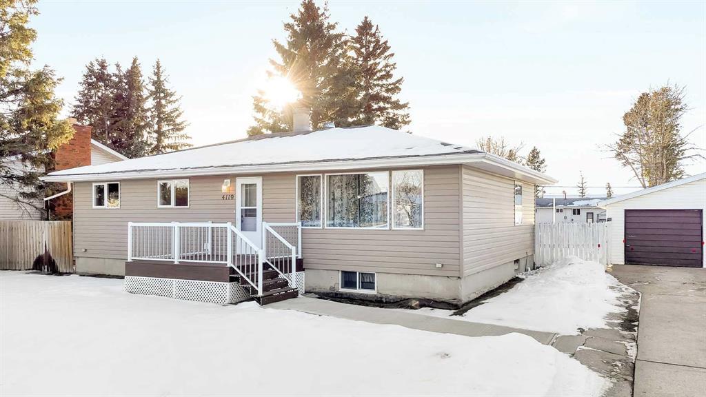 Wow! Wow! Wow! This is the one you’ve been waiting for! A Bright beautiful BUNGALOW on more than a 1/4 ACRE lot in the heart of Innisfail! This adorable bungalow has 2 bedrooms up plus a main floor laundry room that can easily be converted back to a bedroom. There is a bright sunshine kitchen with lots of counter and cupboard space and a cute breakfast nook for those rushed morning meals before work and school. A big sunny window finishes off the kitchen and lets you cook meals while keeping an eye on the kids playing in the back yard. Off the kitchen is a dining room with plenty of room for a large dining room table for those big family dinners! The dining room flows into the grand living room with a huge east facing picture window to let in the morning sun! The living room could fit an oversized sectional and is a great place to curl up to watch TV or read a book. Finishing off the main floor is a 4 piece bathroom with a walk in soaker tub! Soak your worries away with a glass of wine at the end of the day. Downstairs is another 4 piece bathroom as well as a wet bar kitchen area. The rest of the basement is untouched waiting for your vision! Think of the man cave or family room you could create down there! SO much potential! Now onto the best part about this property which is the fabulous WEST facing back yard! This yard is huge and can easily accommodate a swimming pool or playground equipment or both! The FENCED yard is very private with mature spruce and fruit trees and the current owner used to have a massive vegetable garden behind the metal fence and gorgeous flower beds throughout the yard. See the pictures to see how the flower gardens looked in the past. And bonus there is a garden shed in the back yard to store all your garden tools. And now onto the amazing and rare DETACHED DOUBLE TANDEM GARAGE with 2 garage doors! You can approach the garage from the front or back. Great for Mom and Dad to park in the winter. His and her garages! Or perfect for a woodworker to hone his craft in one part of the garage and park a vehicle in the other half. There is also room for RV parking too! This home has been lovingly cared for by its owners of 47 years and has been freshly painted with some new light fixtures. The home has a newer roof, siding, floors, windows, furnace, front deck, and a two tiered back deck. All that’s left to do is for you to move in! Oh and did we mention the location! This home is walking distance to the Autumn Grove Seniors lodge, The Innisfail Health Care Center, Aquatic center and Spray Park and the Innisfail Schools. Check out the virtual tour. Some photos have been virtually staged. Call your favorite realtor today for a showing! This one won't last long!
