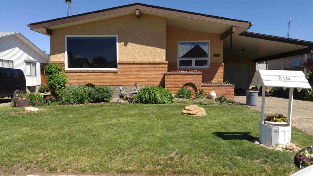 FIVE bedroom FAMILY HOME with quick possession for sale in Bow Island. This family home has seen considerable updates and is ready for the growing family. When you live at 216 2 Ave E Bow Island you are in a family neighbourhood with prime location for the kids as they are within walking distance to playgrounds, schools, the pool and arena. The main floor has two bedrooms, a 5 piece bath as well as a 2 piece ensuite, a large laundry room, a spacious living room with wood burning stove as well as an updated kitchen and dining room. The kitchen was updated in 2016 with beautiful knotty alder cabinets and is a beauty! The basement has three bedrooms, a large family room, a 3 piece bath along with plenty of storage space. The backyard is fenced and private, a great place for the kids, the pets and entertaining. All the windows have been updated to pvc, the shingles are 50 year rubber shingle and are only 6 years old. Plenty of protected parking also, with a single, heated attached garage and a carport. ** the pictures on this listing are from 2018.