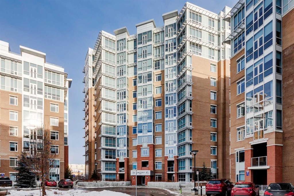 Welcome to your modern and trendy home in Varsity Estates, one of the best communities in the city! This stunning main floor condo is a former show home with a beautiful upgrade package including custom matching granite, soft close cabinets, tilework, flooring and more! This 2 bedroom, 2 bathroom home shows fantastic and includes a huge outdoor space (200+ Sq Ft) that has both a covered and uncovered patio for your enjoyment. The fabulous floor plan starts with a designer kitchen featuring extended granite countertops with bar seating, stainless steel appliances, glass tile back splash and plenty of upgraded painted maple cabinets including reach in pantry and pots and pans drawers. The kitchen opens to the dining and living room areas enhanced with gorgeous vinyl plank floors. Down the hall, past the large linen/storage closet, you will find the bedrooms separate from the living area. The primary bedroom is bright with plenty of windows, a walk-in closet, and an ensuite with dual sinks, a soaker tub, and a separate shower with 10mm glass door. Bedroom two is a flexible space that will work well as a home office or as a guest room when required. It is adjacent to a 3-piece bath with large 5’ walk-in shower with custom tile detail. A spacious laundry room includes oversize washer/dryer with floor to ceiling storage shelving. Titled underground parking in a prime location and separate storage area also included. The condo community offers amazing rooftop amenities year-round! These include a well-equipped private gym, steam rooms, meeting/party room & a mountain view terrace. An on-site professional building includes doctor's office, pharmacy, coffee shop & more. Just steps to the Dalhousie LRT and walking distance to parks & shopping centres. This home and location have it all - call to view today!