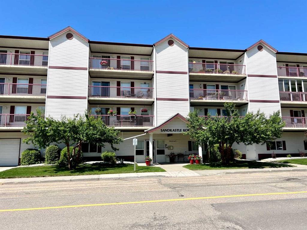 Come and enjoy adult living in this desirable corner unit in Sandkastle Kort. This condo features 2 bedrooms, a full main bath and a two piece ensuite, spacious kitchen and living room and the added bonus of a glass enclosed east facing balcony. Lots of in suite storage including custom built sewing/crafting counters in the master bedroom and a storage room on the balcony. This well managed building features a heated parkade with an assigned parking stall and two meeting rooms on the main level. Located close to down town amenities and Rocky's newest pickle ball court.