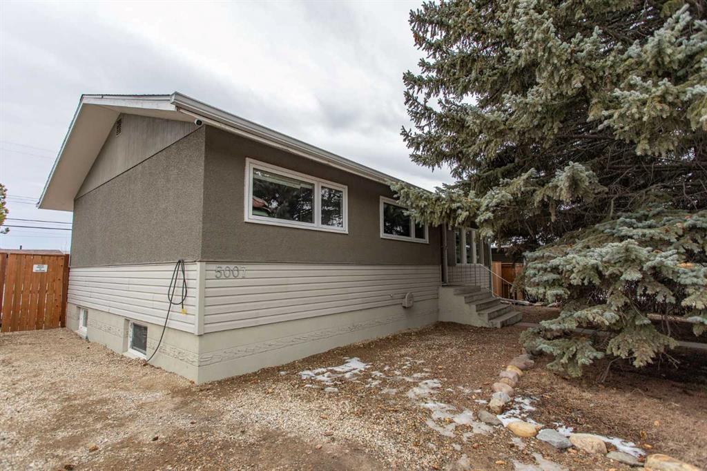 Great opportunity to own a bungalow on a mature lot. This home has 3 bedrooms on the main floor, an updated 4pc. bathroom with; new tile, hardware accessories, new light fixture & newer vinyl window as well. The kitchen features full tile backsplash, sil-granite sink stainless steel appliances, newer windows as well. The living room features laminate flooring and a large window overlooking the beautiful mature spruce trees. The basement features a family area, two bedrooms, laundry, storage and a 3pc. bathroom. The larger bedroom is set up as a primary bedroom with a walk-in closet and connects to the 3pc. bathroom. Other features: fresh paint throughout the house, laundry/utility room with lots of storage, shingles replaced in approx. 2019, dog run, RV gate, fire pit, garden beds, fully fenced, and shed.