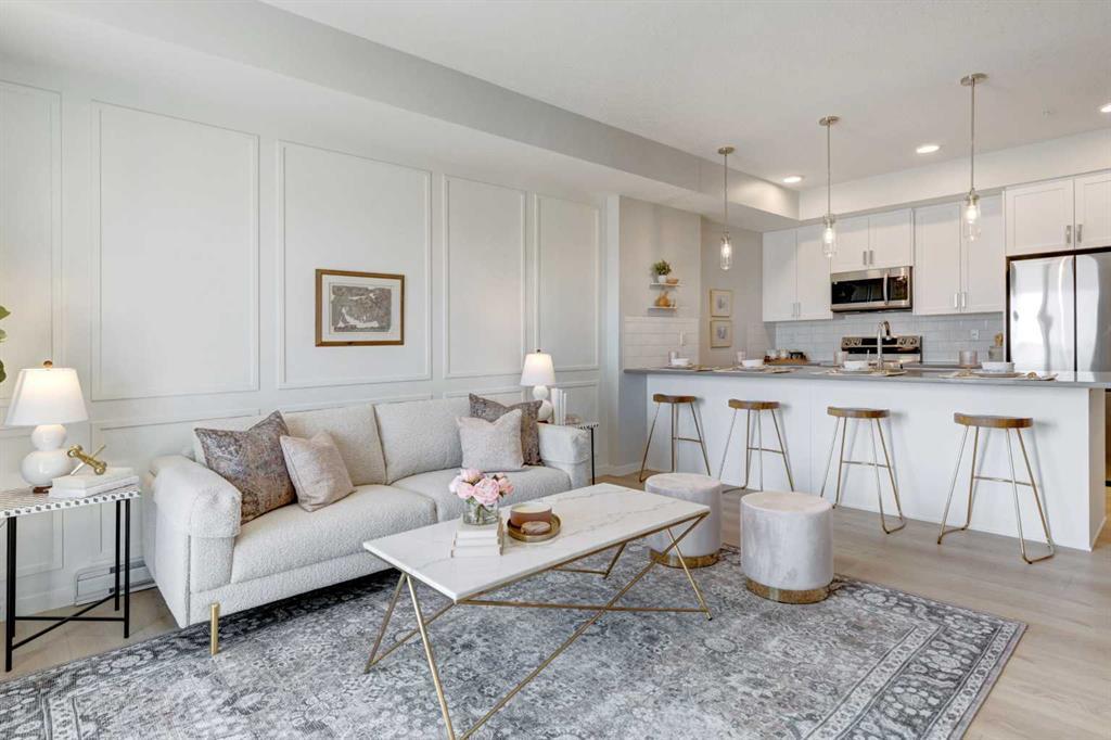 Introducing BELMONT PLAZA, a highly sought-after development in BELMONT, Calgary. Built by award-winning builder Cedarglen Living, recipient of the "Builder of Choice" award for 4 consecutive years. BRAND NEW "H2" unit with high-spec features and customizable. You will feel right at home in this well thought-out 819.04 RMS sq.ft. (892 sq.ft. builder size) 2 bed, 2 bath home with open plan, 9' ceilings, LVP & LVT flooring, carpet to bedrooms, Low E triple glazed windows, electric baseboard heating, BBQ gas line on the balcony, Fresh Air System (ERV) in every unit and so much more. The kitchen is spectacular with full height cabinets, quartz counters, undermount sink, rough-in water line to the fridge and S/S appliances. The island is extensive with built in breakfast ledge, which transitions into the spacious dining & living area, perfect for entertaining. The spacious primary bedroom has a large window (triple pane windows), sizeable walk-in closet and 4pc ensuite with dual sinks. The additional bedroom is perfect for kids, guests, or an office with a large walk-in closet as well. Nearby is the laundry/storage room (washer & dryer included) and a 4pc bath with quartz counters and undermount sink. Highlights include: Hardie board siding, white roller blind package (except patio doors), designer lighting packages available, sound reducing membrane to reduce sound transmission between floors, clear glass railing to balconies, 1 titled underground parking stall included and limited storage cages available for purchase. This beautiful complex will be fully landscaped, includes a community garden with walking paths and seating areas nearby. Steps away from shopping, restaurants and so much more. PET & RENTAL FRIENDLY COMPLEX, UNIT IS UNDER CONSTRUCTION AND PHOTOS ARE OF A FORMER SHOW HOME, FINISHING'S/PLAN WILL DIFFER. Estimated Completion date for this unit is March 1, 2025 - Dec 31, 2025.