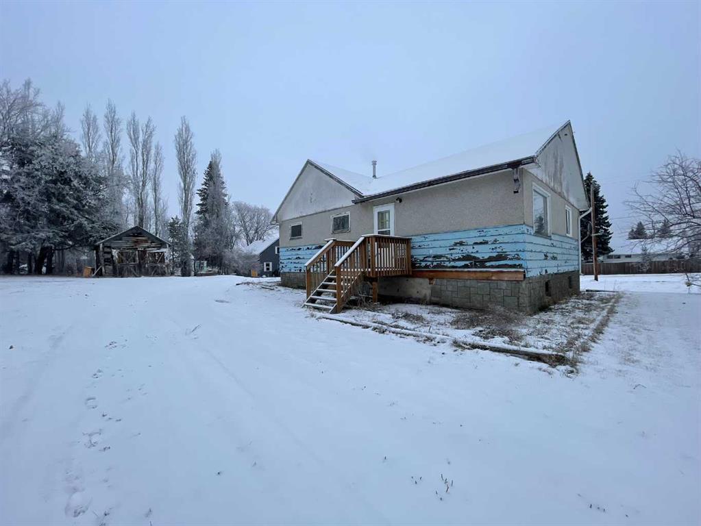 Opportunity presents! This 936 square foot, 1950s bungalow is to be sold ‘as is – where is’, the home does present in a pleasantly surprising condition overall. It is located on two lots in the busy community of St. Walburg, Saskatchewan. There are three bedrooms and one and a half bathrooms, the basement remains unfinished other than the bathroom fixtures are installed. There is a convenient back entry and mud room area with a sink to easily wash up from outdoors or drop coats and boots. The eat-in kitchen is a generous size and the living room offers bright natural light from the south facing window and access to the front porch which appears to be of newer construction. Exterior doors, some windows, flooring and the electrical panel have been updated. There is a 1930s wooden garage/shed at the rear of the property. Schedule A is required with all offers submitted. Arrange your private viewing today and make your move!