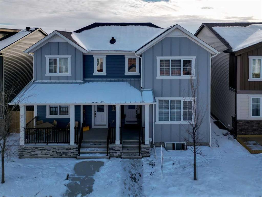 FRESHLY PAINTED 1900 SQFT semi-detached MOVE-IN-READY modern home in the community of Carrington! This is a 2018-built 3-bed 2.5-bath home that has been freshly painted WITHIN THE WEEK, and has 1900 SQFT of living space, the LARGEST semi-detached floor plan in the neighbourhood! Walking up to the house, you will find a cozy and inviting front porch leading into your living room. Open-concept floor plan on the main floor with vinyl flooring throughout, you have a living room, central dining room with updated modern light fixtures and kitchen with your very own pantry. Kitchen eat-at island is very spacious with enough room to comfortably seat 4 people and a very unique CURVED design with quartz countertops. Off of the kitchen is a mudroom with an exit out to your garage and back deck, as well as a 2-piece powder room for guests. Heading upstairs, your master bedroom comes with 2 bonuses, a large walk-in closet and a full 5-piece ensuite bath with double vanity sinks, a soaking tub and a standing shower! Along with that, there are 2 other bedrooms, another full 4-piece bath to share and a very conveniently placed laundry room on the upper level. Outside, you have a good-sized deck off of your back door for entertaining and a fully fenced-in backyard. Access to the double attached garage through the mudroom or through the PAVED back lane, which means no more having to clean your car off in the wintertime. We've also got you covered in the Summertime with central Air Conditioning! In the neighbourhood, you have access to many amenities like nearby Save-On-Foods, shopping plazas, Carrington Skate Park, Cross-Iron Mills and Costco. On top of that, lots and lots of playgrounds, soccer fields and walking/biking paths in the neighbourhood with Carrington Ponds, Livingston Ponds, Carringsby Lake and more all within walking distance. Jumping in the car: Downtown is a 25min drive away (27KM), Airport is a 15min drive away (16.2KM), and Banff is a 1 hour 20 min drive away (130KM).
