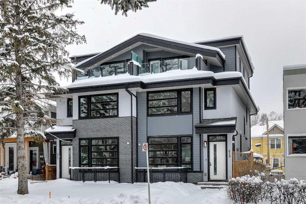 Discover unparalleled luxury at 619 Royal Avenue SW located in the sought after community of CLIFF BUNGALOW. This BRAND NEW 3-storey semi-detached infill built by TimberWolff and designed by Rochelle Cote offers over 3500 sq ft of living space with 4 bedrooms, 4.5 bathrooms, a third floor PRIMARY RETREAT and a PRIVATE ELEVATOR . The 10 ft ceilings on the main level encompass a bright living room showcasing a tiled feature wall with gas fireplace and custom millwork flanked on either side. This leads you to the heart of the home which is the impeccably designed kitchen featuring a large waterfall kitchen island with seating for 5 and a high end Fisher & Paykel S/S appliance package with undercabinet lighting. The adjoining dining area has ample room for family gatherings and SOUTH FACING sliding glass doors that lead to a large elevated patio. The second floor boasts two spacious bedrooms, both with WALK-IN-CLOSETS, one with it's own ENSUITE bathroom, a second 4 piece bath, a large laundry room with sink and ample storage and a flex/home office space. The primary bedroom commands the entire third level offering an exclusive private SANCTUARY. Greeted with your own coffee bar on the way up and a private balcony to enjoy your morning coffee. The spa inspired ensuite has an oversized glass enclosed walk-in shower with bench, heated floors, dual vanity, stand alone tub and walk-in-closet. The lower level includes extra large basement windows, an inviting rec room with a fully equipped wet bar, a 4th bedroom, full bathroom and a gym. Further features include lower level in-floor hydronic heating, air conditioning, reverse-osmosis, heated tile floors on upper levels in all bathrooms and laundry room, 2 zone furnace, central vac and a heated double detached garage including a floor drain, sink and cabinetry. Easy access to restaurants, services, amenities, schools as well as the Elbow River pathway system.