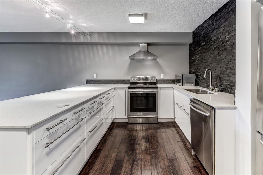 Take a look at this 2 Bedroom, 2 Bath unit that has it all! Fantastic location, featuring a bright open floor-plan, engineered hardwood & tile flooring through out, large in-suite storage room and laundy. The chefs dream kitchen boasts plenty of updated soft close cabinetry, sparkling quartz countertops, a breakfast bar and a stunning stone feature wall above the sink. An abundance of mature tree’s make the south facing patio feel quite secluded and private. The spacious Master bedroom is complete with custom built in’s in the walk in closet and a chic ensuite bathroom. As an added bonus find a second generously sized bedroom and 4pc main bath with custom tile features. This well maintained secure building really shows pride of ownership, inviting lobby, manicured outdoor communal space, entertainment room equipped with a gym and reading room. Plus 1 assigned underground parking stall in included with a deep cubby style storage locker. This stunning condo in the Heart of Mission must be seen, enjoy all the amenities at your fingertips that this vibrant inner city community has to offer!