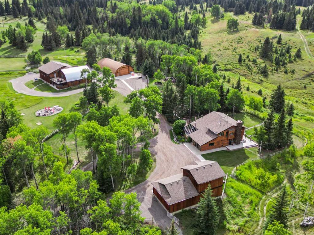 “Warewoods Way” estate is hidden away and surrounded by the Breathtaking natural beauty of the Foothills SW of Millarville. From the road, you have no clue this GORGEOUS estate in the trees on 16.13 ac EVEN EXISTS! If privacy, tranquility, seclusion, and sustainable living is what you’re after, then welcome home. Upon entering the front security gate, a winding driveway through the trees inevitably leads to the 4-car detached garage and 3,500 + sq/ft 2-storey home that underwent a major renovation in 2018 that is evident throughout. Features of this home include: 5 bedrooms, 3 1/2-bathroom, main floor engineered hardwood plank flooring, granite countertops, farmhouse sink, stainless steel appliances, built in oven, 1 W/B stove, 1 W/B fireplace, 1 gas fireplace, sauna, a massive wrap-around deck to expand your living space, and so much more. The heated 4-car detached garage features a 2nd storey loft space that could serve a variety of different purposes! This property has so much to offer!!! A short walk South on the boardwalk pathway will take you to the greenhouse & wood storage room with a 7’ high fenced garden area. A back-up generator located behind the greenhouse offers security from power failure should the need ever arise. Further to the South you will find the 40’ x 60’ Quonset Shop complete with a large 18’ x 14’ overhead door, 10’ x 40’ mezzanine, overhead radiant heater, H/C water, loading dock, built-in workbenches, 240V plugins, concrete floors, and more. The Barn/Studio/Shop/Office is so versatile, the opportunities are unlimited! The front entry opens into a small office, kitchenette, 3-pc bathroom, and the stairwell to access the upper level. Enter into the equipment storage area that is complete with 2 overhead garage doors, a dog wash, H/C water, in-floor heat, and more. Step outside the O/H door to a ground level covered patio area!! On the South side of the building on the lower level, you will find a Workshop complete with an overhead natural gas radiant heater, 18’ x 14’ overhead door, 3 built in workbenches, a tool storage area, air compressor, pressure washer, floor drains, work benches, and a lot more! The upper “loft” is phenomenal! On one side you walk into an office suite that is set up with desks and computers at one end and storage/seating area at the other. On the other side you will find a 39’ x 30’ studio room that is perfect for all types of entertaining! This space is set up with a gas fireplace, kitchenette, hardwood floors, ceiling fan, tongue and groove wall/ceiling, access to the upper balcony deck. So many improvements have been made including the addition of walking paths, total outbuilding reconstruction, extensive landscaping, 2 RV parking spaces with all the amenities. The bare land parcel to the North of this property is also being offered up for sale for the Buyer who would like to own the neighboring parcel. Check out the 3D UTOUR for the full virtual tour! This is a property you don't want to miss!!