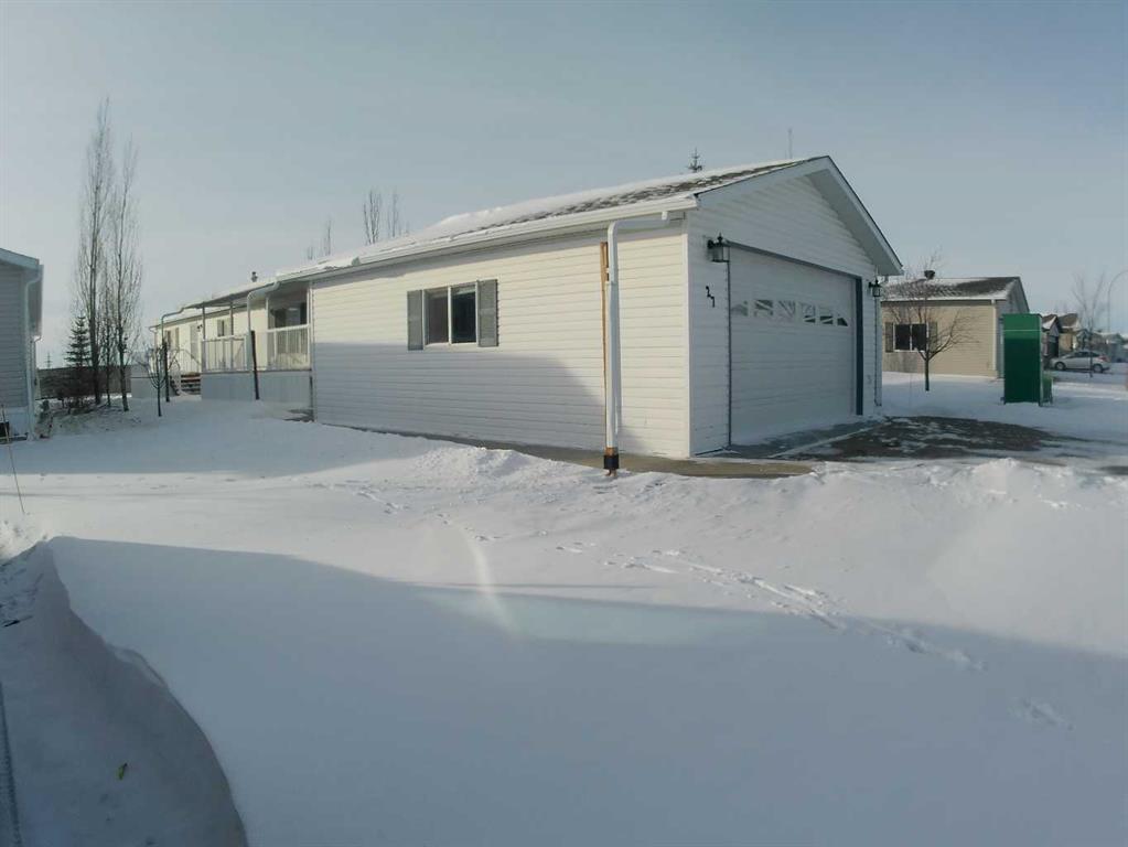 Welcome to this fantastic well kept modular home with DOUBLE GARAGE in the sought after 55+ community of Silver Lynx. Already set up with an exterior CHAIR LIFT and recently updated with a beautiful full size tiled stand alone shower in the Master Ensuite, this home is perfect for anyone with mobility concerns. VACANT, CLEAN and ready for your QUICK POSSESSION, the search may be over! As you enter in the front door you are greeted with a large open area that is where you will find the living room, wrap around kitchen and dining area which is nestled off to the side with a large window to keep an eye on the outside world and the wildlife that commonly saunters through the park. Add the vaulted ceiling, and skylights over the kitchen Island, and you are sure to appreciate the grand feeling and enjoy all of the natural sunlight. This three bedroom, two bath home boasts a great floor plan with room for most everything. Master Bedroom with ensuite and walk-in closet is privately set at one end of the home with the other 2 bedrooms and 4 pce bath at the opposite end. Back entrance is where you will find the laundry pair, closet and room left for freezer if you would like. Not only will you enjoy the double attached GARAGE WITH 8X16 DOOR, large SOUTH COVERED DECK and privately nestled along the west side of the park offering SPECATULAR VIEWS. Located close to shopping and eateries. PARK APPROVAL REQUIRED - small pets are allowed but require Approval from Park Management. The shingles and skylights were replaced in 2020, and a new fridge about 1 year ago. If isn't often these units with this location in the park as well as all of the bells and whistles comes on market, don't lose out... call today to view!!