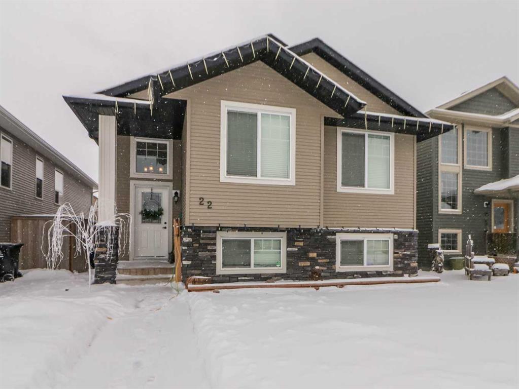 GREAT LOCATION IN BLACKFALDS! Front entrance opens with tiled floor, the main floor has 3 bedrooms and a nice kitchen with an island and pantry. Primary bedroom has a walk-in closet and 4pc ensuite. Living room has hardwood floors and 2 more bedrooms completing this open floor plan. Fully finished basement with 2 more bedrooms and large family room completed with wet bar. Underfloor heat is roughed in. 24x24 garage with heat and 9 foot ceilings. Home is close to shopping and schools.