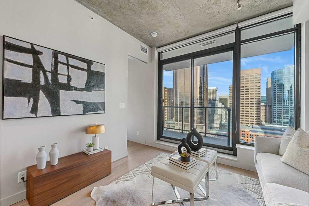 Discover a captivating urban lifestyle on the 15th floor of the esteemed 6th and Tenth building, offering stunning north-facing views of Calgary's vibrant downtown skyline. This compact gem, boasting just under 400 square feet, is a testament to modern sophistication and urban living. Indulge in the panoramic vistas of the city's core, framed by the sleek architecture that defines this unique residence. Unlike its counterparts, this unit is thoughtfully designed without a den, providing a sleek and efficient layout that maximizes every inch of space. Step into a world of engaging design with exposed concrete ceilings and feature walls, infusing the ambiance with a distinctive modern-industrial allure. The 15th-floor charm is complemented by proximity to the pulse of the city, with a walk score of 98 and a bike score of 94, making it a natural haven for urban enthusiasts. Indulge in the vibrant lifestyle this location affords, with trendy coffee shops and acclaimed restaurants such as Craft Beer Market, Vintage Steakhouse, and Gravity Espresso & Wine Bar just steps away. While this unit doesn't include parking, its location and compact design open up opportunities for those who seek an active and dynamic city lifestyle. As a resident, you'll have access to the building's amenities, including an expansive outdoor terrace on the 2nd floor, offering scenic views of the Calgary Tower. While this unit lacks a designated parking spot, its compact footprint aligns with a commitment to sustainable living and alternative transportation options. Ideal for those who appreciate the pulse of city living, this unit stands out as an attractive investment opportunity. Imagine the potential for short-term rentals or Airbnb ventures, with the freedom to explore new avenues unburdened by typical building restrictions. Connect with us to explore the possibilities and envision life in this captivating urban retreat—it won't be available for long!