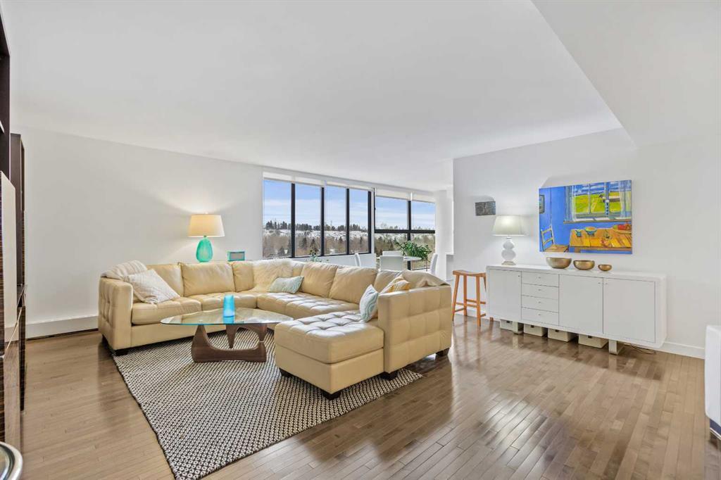 RARE LOCATION- RENOVATED in 2014 IN CALGARY'S MOST PREFERRED CONDO LOCATION...the "PREMIERE" Location on the Elbow River -next to The Grandview + The River. High floor, single level home - 2 bedroom, 2 bathroom unit with Large WINDOWS ON 3 SIDES of the suite to capture it all - with EXPANSIVE views of the Downtown skyline, East of Stampede grounds, Sunny south views of the Elbow River! Located on the River Promenade only a short walk to 4th Street, Glencoe club and downtown! This unit has been renovated with flat finish ceilings, espresso hardwood flooring, granite counters and backsplash! As you enter the well regarded Riverstone Complex you are greeted by a secure building with excellent concierge. On the main floor there is a gym, pool with 2 hot tubs, saunas, party room, library, tennis courts just outside party room. There is a carwash in the parkade and numerous visitor stalls. You have an stall in the secure, underground parkade and storage locker. As you make you way up to the 7th floor you enter into a large foyer, Living room with hardwood floors, bar in nook area, the views are serene and can be enjoyed in every room in the unit! There is a formal dining room, 2 large bedrooms, walk in closet in the primary with a 5 piece en suite. There is a 3 piece washroom with vessel mount sink. The kitchen has built in stove top, oven - high end appliances. Behind the kitchen is a pantry, laundry and additional storage! These South facing units are extremely desirable in this complex with views unmatched! This is truly a one of a kind opportunity to be in this coveted location!!
