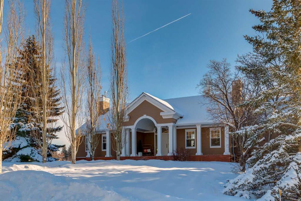 Welcome to 7 River Ridge Close! Situated on one of the most picturesque lots in all of Springbank. Located on one of the established and secluded cul-de-sac’s with magnificent trees and rolling ravines, this special “Southern Styled” property could be your future family home! The yard is spectacular with expansive lawns, gigantic Spruce trees, columnar Aspen trees along the sidewalk, groves of trees set into the hillside and a lovely curved driveway leading to the carriage garage. A lower brick terrace to the South is the perfect spot for afternoon lunch while watching the children play in the backyard. If you are looking for quiet, and just the sounds of nature, this is your property! The upper deck expands across the entire backside of the house featuring three patio doors leading out to the bright and spacious outdoor "living room" area. Take a hike down the ravine, or through the neighboring estate areas, or down to the river. This is the quintessential acreage for those families that love to take their dogs for beautiful walks. The colonial architectural style of this classic home includes a captivating columned front veranda and curved brick steps ascending to the impressive curved front door. Features of this 4400 SF bungalow walk-out include THREE main floor bedrooms, TWO additional lower level bedrooms, FOUR full bathrooms, THREE fireplaces, exceptional millwork detailing throughout, an entertaining lower level, and a designer Country Kitchen with a true Chef’s butcher block island. A triple car heated attached garage along with another detached triple car CARRIAGE garage with a developed space above are a car-lover’s dream. Homes like this only become available every 20 years! Don’t miss this incredible opportunity to live in the heart of Springbank!