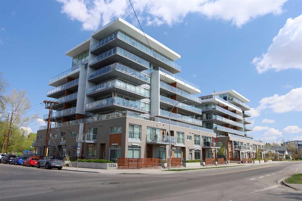 Upscale inner city living doesn't get any better than in this exquisitely appointed home in EZRA ON RILEY PARK...this highly-coveted condo project from Birchwood Properties backing onto historic Riley Park. One of the sought-after townhomes offering 2 levels of contemporary air-conditioned living, this beautiful home in the West tower of this concrete & steel complex enjoys upgraded flooring throughout, 2 bedrooms & 2.5 bathrooms, sleek designer kitchen with quartz countertops & 2 titled underground parking stalls for your exclusive use. Truly sensational open concept main floor with 9ft ceilings, expansive living room with wall of windows, dining area with huge pantry/closet & fully-loaded kitchen with quartz waterfall island & full-height white glossy cabinets, glass backsplash & stainless steel appliances highlighted by the Fisher&Paykel gas stove & Blomberg 4-door fridge. Upstairs there are 2 bedrooms & 2 full baths; the owners' suite comes complete with an awesome walk-in closet complete with built-ins & luxurious ensuite with free-standing soaker tub, double vanities & oversized glass shower. Additional features & extras include 2nd floor laundry with sink & Whirlpool washer/dryer, quartz counters & tile floors in the bathrooms, unit-controlled central air & heating, roller blinds & West-facing patio with gas BBQ line. The 2 titled parking stalls (side by side) & assigned storage cage are both conveniently located on the same parkade level. The lucky residents of EZRA also have access to the fantastic amenities: fitness centre, bike storage, EZRA CLUB lounge with wine storage/tasting room, inviting lobbies plus underground visitor parking for their guests. Coveted location next to the Hillhurst/Sunnyside community centre, only a few short minutes to SAIT & LRT, trendy Kensington district, river pathways & downtown. Welcome home!