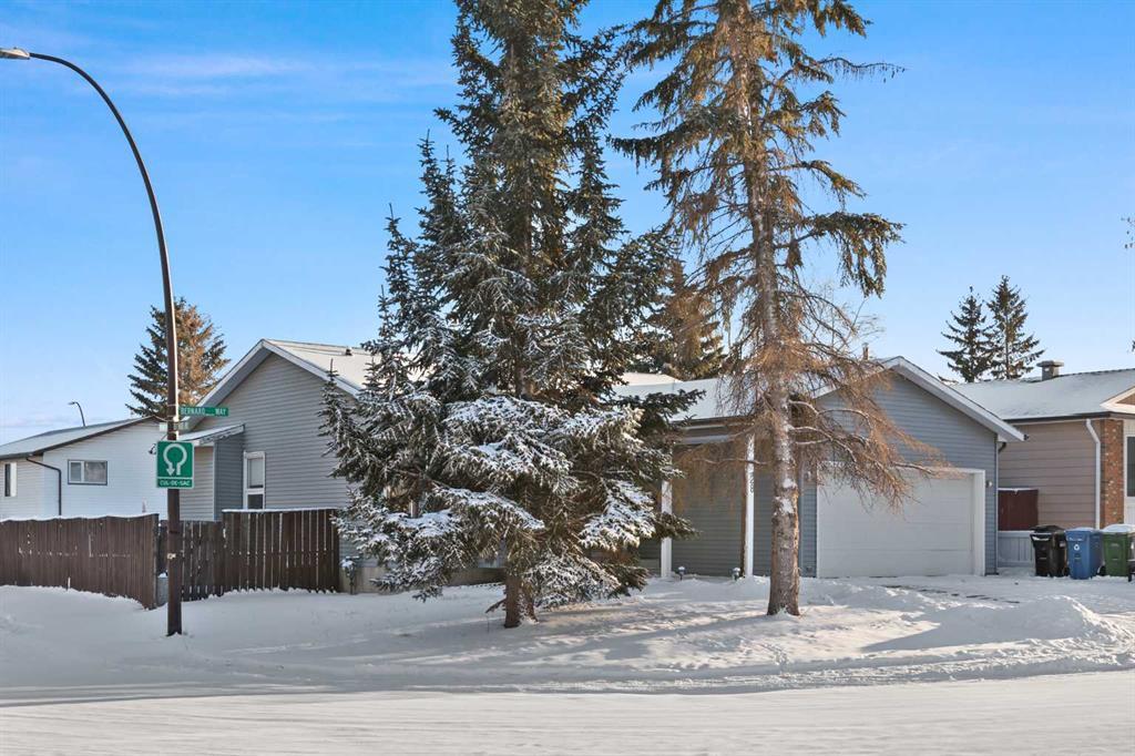 Impressive and rare Beddington Heights bungalow with a double attached garage! You'll be amazed at how attractive this bright open floor plan is! This "3+1 bedroom + den" home is located on a large corner homesite. You will love the 2500+ sq ft of living space (including the basement). A southwest-facing oversized rear deck faces out to the gorgeous backyard. Excellent mature landscaping invites you to enjoy this oversized homesite. The main living area is very bright & open, featuring the kitchen/nook/dining room/front living room & foyer with 3 bedrooms up. The foyer is very roomy and is finished off with superb oak railings! The basement is fully finished with an oversized family room, full bathroom, bedroom, games room, and utility area. Upgrades include a stone-faced fireplace, oversized deck, and garden patio doors! A sizeable primary bedroom features an oversized closet & an ensuite with a shower! Plus, you can view many more details on your visit to this fine home! Call your friendly REALTOR(R) to book a viewing!