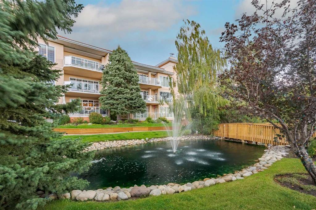 Welcome Home! Live in the highly sought-after & prestigious Bentley. Units in this landmark complex rarely come to the market & #301 is a MUST SEE! With ownership enjoy sophisticated, maintenance-free living & the security of gated grounds, underground parking, extra storage locker, as well as private access to the natural beauty & pathways that Fish Creek Provincial Park has to offer. #301 is a ground-level unit but is raised just above the meticulously landscaped courtyard, pond & gardens. A unique highlight is the private & secure elevator access that brings guests directly up to your own exclusive foyer, a feature not seen in many condos. French doors close off the elevator to keep it out of sight when desired. Inside you'll immediately be WOWED by the 9’ ceilings, new vinyl flooring (2022), & the natural light flooding in from 3 directions. Take note of other recent upgrades including newer vinyl windows, fresh paint throughout, custom builtins, custom window coverings/blinds, central A/C, & central vac. The gourmet kitchen offers miles of exquisite granite counters, separate drinking water tap, & newer appliances including an integrated Sub-Zero fridge, Bosch dishwasher, Jenn-Aire electric cooktop, Kitchen-Aide wall oven & hidden range hood. Immaculate oak cabinets provide ample storage & pantry space, while the built-in breakfast table is a perfect spot for informal meals. The laundry room has a handy garbage chute, builtin storage & stacked laundry leaving room for a freezer/2nd fridge.The formal dining area & dry bar makes family meals & entertaining a breeze, another feature not found usually found in condo living. From the living room & adjacent den area you can enjoy the cosy gas fireplace & the spectacular south views of the pond, fountain & meticulous gardens, with Fish Creek just behind. Step out to the huge covered balcony & find a gas hookup for a BBQ & sunshade to add privacy or block out the sun on hot summer days. Enjoy daily walks through the walking paths via your your own private back door that leads outside. Back inside the exquisite & spacious primary bedroom can be closed off by French doors. Find a large walk-in closet with built-in shelving & ensuite bath complete with a tile shower, jetted tub, granite counters, vanity station, even more storage. The 2nd bedroom does double duty as a guest bedroom or den/office with a handy custom built-in Murphy wall bed. Pull it down only when needed otherwise enjoy an office with builtin storage & a walk-in closet that can be behind closed doors if desired. A beautifully renovated 3pc bathroom services the 2nd bed with a tiled shower & granite counter. This unique floorplan offers a very flexible layout depending on your needs, all with an IDEAL LOCATION. Find shopping and all amenities a short distance in 3 directions (Avenida, Southcentre, Shawnessy, Deer Run). The Canyon Meadows CTrain Station is only a 10 minute walk! Book your private showing today!