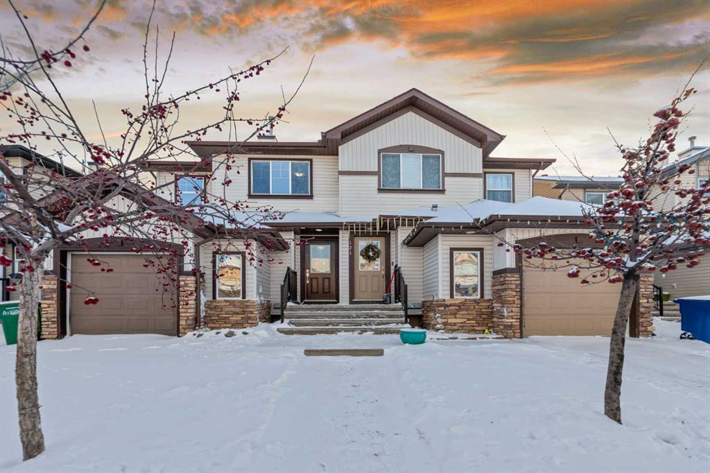 Welcome to this stunning half duplex in the desirable Luxstone neighborhood of Airdrie, Alberta! Boasting 4 spacious bedrooms, including a master suite with its own luxurious ensuite and walk-in closet, this home is perfect for growing families or those seeking extra space. With 2 full baths and 2 convenient half baths strategically placed throughout the home, you'll never have to worry about waiting in line during busy mornings or cocktail parties. Every detail has been carefully considered, ensuring your utmost comfort and convenience. The heart of this beautiful home lies in its open concept living area. The well-appointed kitchen features modern appliances, ample cabinetry, and a sizable island that's perfect for both meal prep and casual dining. A bright and airy dining area, ideal for hosting intimate family meals or entertaining friends on special occasions. The bright and airy living room invites you to unwind beside a mesmerizing fireplace, creating the perfect setting for relaxation. Lots of windows to flood the space with natural light. Step outside onto your private deck - an oasis where you can enjoy warm summer