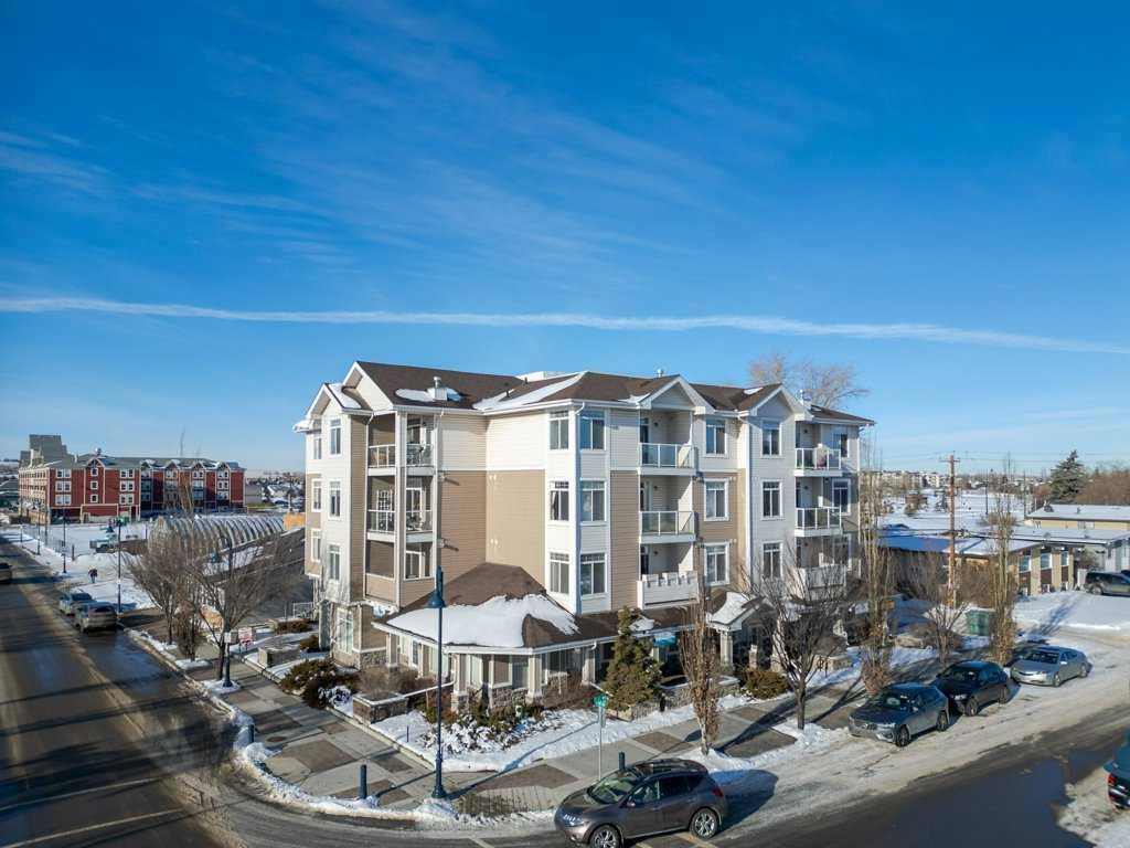 Welcome to the charming community of Old Town Airdrie! Nestled in a prime location, this condo apartment offers a perfect blend of contemporary luxury and small-town charm. As you enter this thoughtfully designed condo featuring 9-foot ceilings that create a sense of openness. The spacious living areas are bathed in natural light, providing a warm and welcoming atmosphere that makes you feel right at home. One of the standout features of this residence is the inclusion of heated floors, a touch of opulence that brings comfort to a new level. The heart of this residence is the beautiful kitchen, adorned with granite countertops and equipped with stainless steel appliances. Whether you're a culinary enthusiast or prefer to entertain, this kitchen is a perfect blend of style and functionality. The two large bedrooms offer a retreat from the hustle and bustle of daily life. The master bedroom stands out with its generously sized walk-in closet and a full ensuite bathroom, providing a private retreat where you can unwind and rejuvenate in style. Beyond the confines of your elegant abode, Old Town Airdrie beckons with its historic charm and vibrant community spirit. Enjoy leisurely strolls through tree-lined streets and parks or explore local shops and cafes. Welcome to Old Town living at its finest!