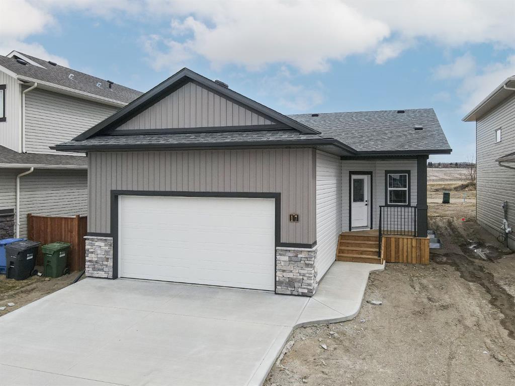 Check out this beautiful brand new bungalow by Laebon Homes, situated in a cul-de-sac in desirable Timber Ridge! This home offers a bright and open plan with 9' ceilings, main floor laundry, and vinyl plank flooring throughout the main living space. The two tone kitchen offers raised cabinetry, stainless steel appliances, quartz countertops, a large island with under mount granite sink and bar seating, and a spacious corner pantry. Sliding patio doors off the dining area lead out to a large deck overlooking the yard, and the adjacent living room is a great place to relax and unwind. The primary bedroom features a large walk in closet and a beautiful spa like ensuite with a freestanding soaker tub, walk in shower, and his and hers sinks. There is also a spacious den or office space at the front of the home, and a convenient powder room down the hall. The basement is fully finished with a huge family and rec room area, two large bedrooms, and 4 pce bath. This brand new home comes worry free thanks to a 1 year builder warranty and 10 year Alberta New Home Warranty. Allowances can be added for blinds, landscaping, and a washer/dryer through the builders suppliers to make this a fully move in ready package. Front sod and rear topsoil to grade are included and will be completed by the builder as weather permits. Immediate possession is available, and GST is already included in the purchase price. Taxes have yet to be assessed. If this home isn't quite what you're looking for, Laebon has available building lots for your custom dream home in Red Deer, Sylvan Lake, Rocky Mountain House, Penhold, Lacombe, and Ponoka!