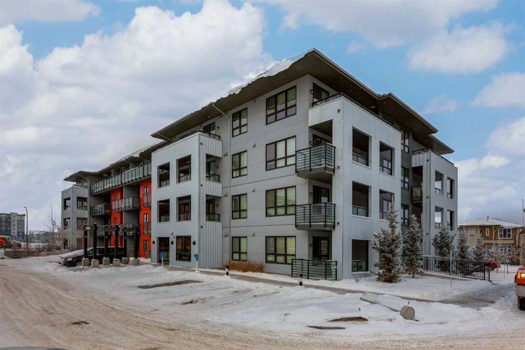 Meet Maverick. This pet friendly building built by Homes by Avi offers an incredibly charming foyer as well as an exterior dog enclosure for when you just can’t make it to Livingston’s off leash dog park on those seriously cold Calgary Winter days. You’ll love this turnkey 2 bedroom, 2 full bath + den main floor corner unit with it’s 9 foot ceilings and open concept floorplan. This well-appointed unit really feels like a home starting with it’s welcoming front foyer that flows into the rest of the space with sleek vinyl plank flooring running throughout the majority of it. The modern and functional kitchen features neutral full-height cabinetry, stunning quartz countertops, under cabinet lighting, tile backsplash and stainless steel appliances. Access to the super spacious, covered balcony with gas line is located just off the kitchen so you can enjoy BBQ’ing and eating al fresco in the warmer months. The unit has SW exposures so natural light streams in through the oversized windows into the living room making it feel nice and bright throughout. The ample sized primary suite boasts a walk in closet and luxe 3 piece ensuite with quartz countertop vanity and oversized tiled shower. The second bedroom is a great size and is located next to the 4 piece bathroom that features a deep soaker tub and quartz countertop vanity. Those working from home will love the private den space, it can be used as storage or as another pantry for those not requiring an office. The walk in laundry room makes laundry day a breeze with a stacking washer/dryer. The unit comes with a titled parking stall in the secure, heated underground parkade so there’s no need to bundle up to head outside to your car. A storage locker for your seasonal decorations, sports gear and more rounds out the units offerings. There's even visitor parking for your guests. For those not familiar, Livingston is home to “The HUB”, which is a state-of-the-art home owners association that allows you to partake in indoor and outdoor fun all year round. It features a 35,000 sq. ft. facility with 3 hockey/skating rinks, tennis courts, basketball court, gymnasium, splash park, playground, outdoor amphitheater, meeting rooms/banquet space, a fire hall and so much more. Livingston has so much to offer including programs for children, special events and a Farmers Market. Livingston is ideal for those seeking an active lifestyle, with a bike pump track and system of trails and paths that you can run, cycle or walk along throughout the community, there’s even direct access to the Nose Creek pathway. This seriously fantastic location means you’ll have quick access to Stoney & Deerfoot Trails which will make your commute to Downtown, the Airport a breeze. Come see why you should make the move to Maverick and become the newest residents of the amazing community of Livingston!