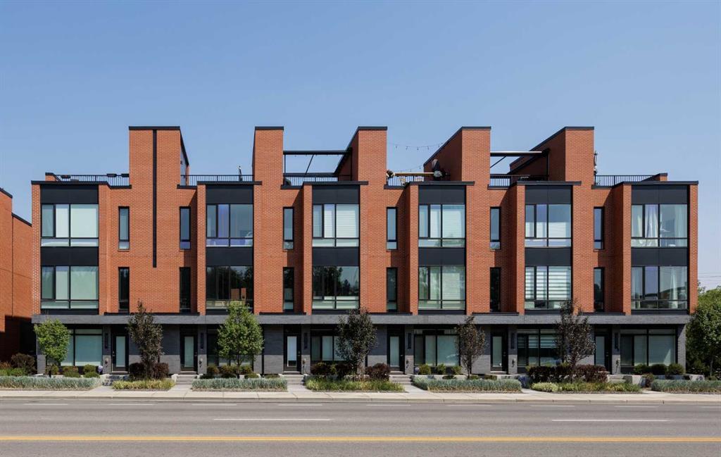 River view, double attached garage, minutes from downtown, seconds from Crowchild, brick exterior, rooftop patio - There is no other listing like this in Calgary. 4 floors in total: Ground floor with garage (includes 2 EV charging ports) and multi-purpose room. Main floor with open concept living, dining and kitchen. Second floor with 2 bedrooms (including walk-in closets), 2 ensuites, laundry, and lots of storage. Top floor with private rooftop patio that includes electrical, water, gas connections, and the AC unit. Main, second, and patio all have beautiful views of the Bow River. This Parkdale complex has guest parking available on Parkdale Lane, and is walking distance to the Foothills Hospital, Westmount Charter School and commercial areas such as Parkdale Plaza (Lazy Loaf Cafe) and Kensington. This unit has had one owner/family living in it since its build, and has been kept in a wonderful condition. It is ideal for home owners or for a rental property investment.