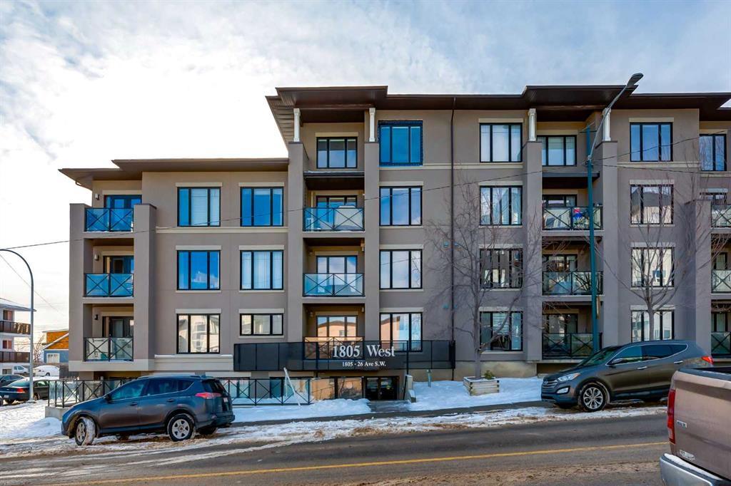 TOP FLOOR 2 BEDROOM CORNER unit with amazing views of downtown. Featuring laminate and tile flooring throughout. Open concept floorplan featuring kitchen with granite countertops, stainless steel appliances including newer fridge and stove and plenty of cupboard space. Dining room and large living room with gas fireplace and access to a balcony with great views of the city and downtown. Two good sized bedrooms, a 4pc bathroom with granite countertops, insuite laundry, upgraded lighting fixtures and underground titled parking stall. Within walking distance of Marda Loop, plenty of restaurants, schools, playground and 17th Ave. This is a must see condo. Make your private showing today.
