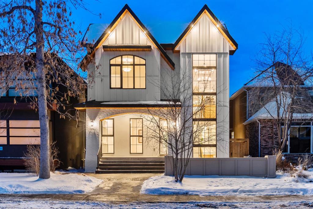 Discover the epitome of upscale living in Calgary's West Hillhurst neighbourhood with The Farmhouse by the prominent inner-city builder Jerry Homes. This newly constructed, custom-designed residence features six bedrooms, which include two spacious primary suites and 4.5 bathrooms. The modern farmhouse exterior with a generous front porch and welcoming foyer leads to a practical home office filled with abundant natural light and tailored millwork. Herringbone-engineered white oak hardwood flooring throughout the main and upper floors, including custom hardwood stairs and triple-pane metal-clad windows that grace every room. The gourmet kitchen is a culinary enthusiast's dream, showcasing sleek black quartz countertops, a black waterfall island, an AGA gas range, a built-in dishwasher, a Sub-Zero refrigerator with custom panelling, a Farmhouse under-mount granite composite sink, a concealed doorway leading to the kitchenette with a walk-in pantry, and more. A separate side entry connects to the mudroom, featuring Italian checkered tiles, custom millwork, and a specially crafted built-in pet water dispenser. The living room offers a custom-plastered gas fireplace, coffered ceilings adorned with wood planks, and wainscoting in the dining room, where you can proudly display your artwork. As you head upstairs, you'll notice large windows in the stairway, allowing natural light to flood the herringbone hardwood floors leading to the bonus room, ideal for family gatherings. There are two primary bedrooms, each with a walk-in closet. The larger primary bedroom features high ceilings, a breathtaking 5-piece ensuite with in-floor heating, his and her vanities, a luxurious soaker tub, a makeup vanity, and a steam shower. Completing the second floor, you'll find another main bath, a 4pc bathroom, two other bedrooms with their walk-in closet, and a laundry room for added convenience. Entertain in style in the finished basement, complete with in-floor heating, a bar area featuring a waterfall island, an additional bedroom, a gym or another bedroom, and a full bathroom with direct bedroom access. This home is loaded with all the upgrades you could desire, including A/C, built-in speakers and patio speakers, security rough-ins, central vacuum rough-ins, in-floor heating in the basement and ensuite, and a spacious triple-car garage. Nestled just steps away from parks, trendy restaurants, and bars, this residence provides a serene escape in the vibrant Kensington district. Its proximity to the Bow River, downtown, the University of Calgary, SAIT, and Foothills Hospital makes it ideal. With easy access to Memorial Drive and Crowchild Trail, this is your opportunity to call this magnificent property your own. Don't hesitate to call today!