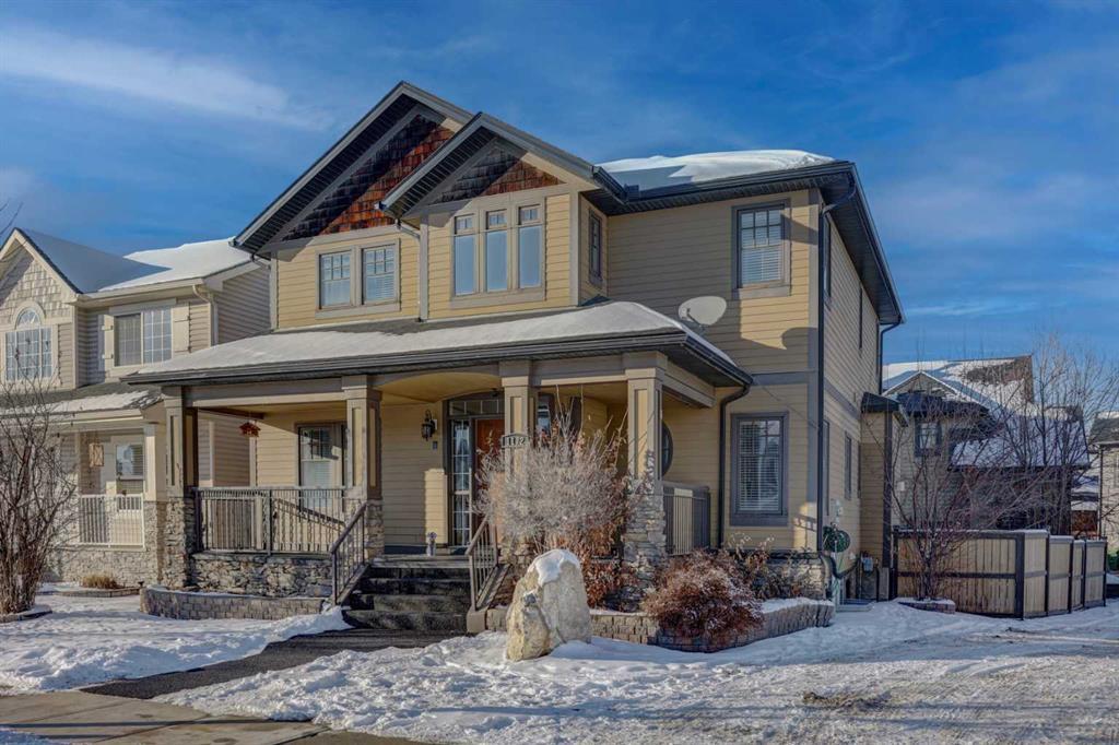 Welcome to this beautiful former show home with endless character and design. This RARE property includes a 2 storey FULLY developed main home with over 3400 square feet of developed living space AND a separate 1 bedroom LEGAL suite carriage house above the Heated TRIPLE detached garage, presenting a perfect opportunity as a short or long term rental option. As you step inside this Premier home you are greeted with 9 foot ceilings on the main, numerous French doors, wainscoting and hardwood flooring. A home office, formal dining room with coffered ceilings, butlers pantry, family room with built in shelving and fireplace, additional dining room, 2 piece bath and kitchen (including beautiful white cabinetry, granite counters, stained glass and accent lighting) complete the MAIN level. The hardwood stairs with built in lighting lead to the UPSTAIRS level which offers 3 bedrooms including the MASTER retreat with large walk in closet, more French doors and a 5 piece ensuite with soaker tub. A functionally designed Jack and Jill 4 piece bath split the other bedrooms. Completing this level is the dedicated laundry room with sink. The LOWER level is designed with 3 additional rooms currently being used as a home theater and 4th and 5th bedrooms. You will also find a 4 piece bath. The rear yard offers a massive 3 tier deck, low maintenance landscaping and an option for RV parking. The triple garage has been divided into a double for the main home and single stall for the carriage suite. The carriage home includes a bedroom, 4 piece bath, living room, kitchen, washer/dryer and deck perfect for BBQs. In addition, the main home includes Central A/C, water softener and Central Vac. Located directly across from green space to the East, walking distance to playgrounds, the paved waterfront walking paths through the Canals, shopping, dining, doctors, dentists and a 3 minute drive to Ralph McCall school (K-4), Our Lady of Peace (K-9 including French Immersion), 2 High Schools and the Chinook Winds splash/water and skate park. Come see all that this sought after area of Airdrie has to offer with the added benefit of an income generating property or self contained in-law suite!