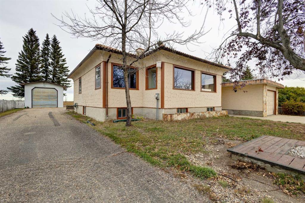 If you are tired of the "cookie cutter", this may be your new home. Spanish exterior styling architechure with unique interior design. Curved walls and textured ceilings with gas fireplace up and electric fireplace down. 3 bedrooms and 2 full baths. All new flooring including luxury vinyl plank on the main floor, and some new flooring down. Extensive woodwork and stained glass lighting set off the main floor family room. The 4 season sunroom is the perfect room to catch up on your reading, sewing or crafts. There is a second kitchen in the basement with a den, full bath, living room and one bedroom. The covered deck allows for views of the extensive farmland behind. There is no shortage of parking on this property including the attached garage and massive shop that would allow for interior RV parking or the dream mechanic's or woodworker's shop with mezzanine. This home is in a quiet and friendly community with an outstanding grocery store, doctors office, K to 12 school and pharmacy.