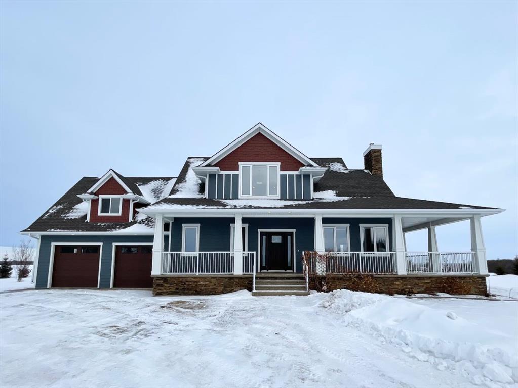 Beautiful country living just minutes north of Camrose, Alberta and a short 40 minute drive to Edmonton. This immaculate nicely designed acreage offers a newer two storey country style home, hip roof barn, large shop, green house, chicken coop and trout pond. The home features a covered wrap around deck with great views of the country landscape and a large 26 x 26 heated garage with 10 foot ceilings. This lovely open concept home features large windows for plenty of natural light and 9 foot ceilings and pot lighting on the main floor. In the bright, cozy living room there are beautiful vaulted ceilings, engineered hardwood flooring and a wood burning stove. Perfect for gathering with your family. Rustic tiles lead you from the front door into the beautiful bright and open country kitchen with adjoining dining area. Warm white cabinets and island, stone backsplash, gas range with hood vent and a farm house kitchen sink all add to the beauty and charm of this welcoming home. Other features on the main floor are a laundry room, bedroom/den and a four pc bathroom. A grand staircase leads you up to the primary suite which showcases beautiful vaulted ceilings with five pc ensuite and his and hers closets. Just outside the primary bedroom is a space that could be used for an office, nursery, craft room, an additional bedroom or a play room for the children. On the lower level you will find three large bedrooms, spacious family room, five pc bathroom and a mechanical room. In floor heating is roughed in. Located outside in the meticulous, well-groomed property is a large 16 x 20 green house and raised gardens for the green thumb enthusiast, a 12 x 16 fenced chicken coop for those farm fresh eggs as well as a trout pond. The large hip roof style barn measures 32 x 32 with 12 foot wings on both sides which is great for storage. On the upper level is a bright open space that could be transformed into an entertainment/games room space to entertain family and friends. The massive shop is ideal for the entrepreneur or car collector etc. It measures 48 x 72 and 40 x 50 with 16 foot ceiling height. The doors measure 3 at 14 x 14 and one at 14 x 18. The shop is heated with a 300,000 BTU overhead furnace and is equipped with 100 amp electrical service. There is a mezzanine that includes an office space and storage. Below the mezzanine are storage areas and a two pc bathroom. There are two 1450 gallon septic tanks for the house and one 500 gallon septic tank for the shop. This acreage is perfect for anyone wanting to live and work from home or to simply enjoy country living at its finest. Don't miss out on this amazing opportunity!