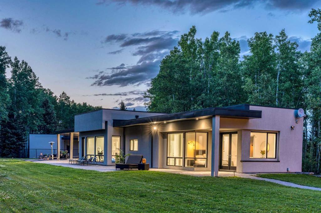 Discover a sanctuary where seclusion meets luxury—your own private estate sprawling across 50 acres of Alberta's pristine wilderness, mere moments from the world-famous Kananaskis and the quaint, amenity-rich Bragg Creek. Imagine residing in the heart of nature, enveloped by towering aspens and fir trees, with exclusive trails for exploring your vast domain, yet remaining within an effortless 45-minute drive to Calgary International Airport and only 30 minutes to downtown Calgary. This architectural gem, extending over 7,600 square feet, blends modern sophistication with an unparalleled natural setting. Step inside this custom-built, five-bedroom bungalow and be greeted by awe-inspiring views of lush forests through expansive windows that encase the open living area. The state-of-the-art kitchen boasts Sub-Zero and Viking appliances, a walk-in pantry, and an inviting center island, flowing seamlessly into the dining and living spaces warmed by a wood-burning fireplace with a gas starter. The wrap-around terrace, accessible via large sliding glass doors, is more than an outdoor area—it is a continuation of your living space where dining and relaxing merge with the sounds of nature. The Primary suite offers a serene escape with panoramic views and an en-suite that rivals any spa, complete with a soaker tub, glass-encased shower, and direct access to the sauna and gym. Additional luxuries include a home office with private outdoor access, a lower level designed for entertainment with a wet bar, theater room, and sports pad, as well as outdoor amenities like a full-size sports court and seasonal skating rink beneath stadium lights. Functional elegance isn't sacrificed with ample space thoughtfully designed for parking, toys, and pets: a 4-car/QUAD heated garage, dog run & dog-room, a mud room with lockers, main-floor laundry room with sink, room for numerous guest-parking including an RV & a private gated driveway. This retreat not only promises a life of tranquil privacy but also keeps you connected to high-end shopping, dining, and outdoor adventures in nearby Banff and Canmore. Embrace the luxury of space and nature's majesty, all within reach of urban conveniences and just 30 minutes from Calgary. This property isn't just a home; it's a lifestyle, awaiting those who dare to wander and dream big.
