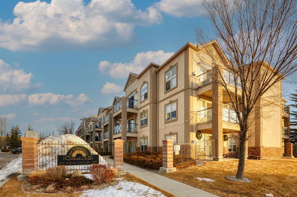 Welcome to the highly sought-after complex, Châteaux of Arbour Lake! This large TOP FLOOR unit features a bright and open layout. The spacious kitchen comes complete with an ISLAND and plenty of cabinets and counter space, overlooking the large dining room and living room. The PATIO doors lead to your own BALCONY! The master bedroom has a walk-through closet and a full ENSUITE. The 2nd bedroom and full bathroom are great for guests. There's an INSUITE laundry/storage room & additional storage. Titled UNDERGROUND PARKING stall in the parkade. The building is 18+ age-restricted and features a party room, gym, sauna, lovely grounds with a gazebo & fountain, and a car wash in the parkade. Lake access is available in this wonderful community. Exceptional value in Arbour Lake! Don’t miss out on this opportunity to own in this coveted building.