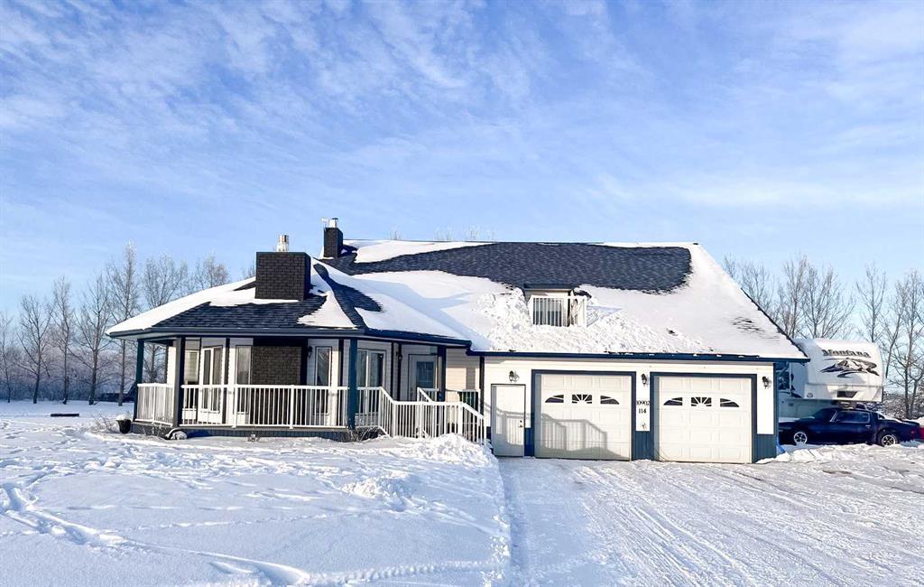 Does town services paired with country privacy appeal to you? This 2.3 acre acreage in Lakeside estates offer's just that along with a host of other great features like a 2 story house with attached garage + workshop, well maintained yard with 2 garden plots., saskatoon trees, trees around the border, huge gravel parking lot, and quiet neighborhood. Entering the home you'll find maybe the largest kitchen you've ever seen! No shortage of cabinets and working space here, as well as a full upright fridge, and full freezer next to it, as well as a walk in pantry. The chefs delight kitchen is a bright and airy space open to both the living and dining room, and accesses the back covered deck, the prefect spot for summer BBQ's. Living room has plenty of windows, as well as a natural gas fireplace to supplement the in floor heat. On the upstairs floor there's a family room also with lots of natural light flooding in, as well as 2 kids bedrooms, full bath, and the master suite complete with a full ensuite and walk in closet! Next to the master is a great open office space, with a door leading out onto the second floor West facing balcony, the perfect spot to catch the sunsets! The lower level of the home has another huge bedroom, full bath, and laundry room for a total of 4 beds, and 3.5 baths in the home. There's also a 2 car heated garage, with double doors leading back to an additional 20 by 20 workshop! Last but not least the basement has a massive cold storage that keeps cool very well, a huge storage room and the mechanical room. Lots of neat features in this house, must be seen to be appreciated with all kinds of recent updates. Yard will come complete with the 12 by 16 shed in the pictures, come on out and have a look today!