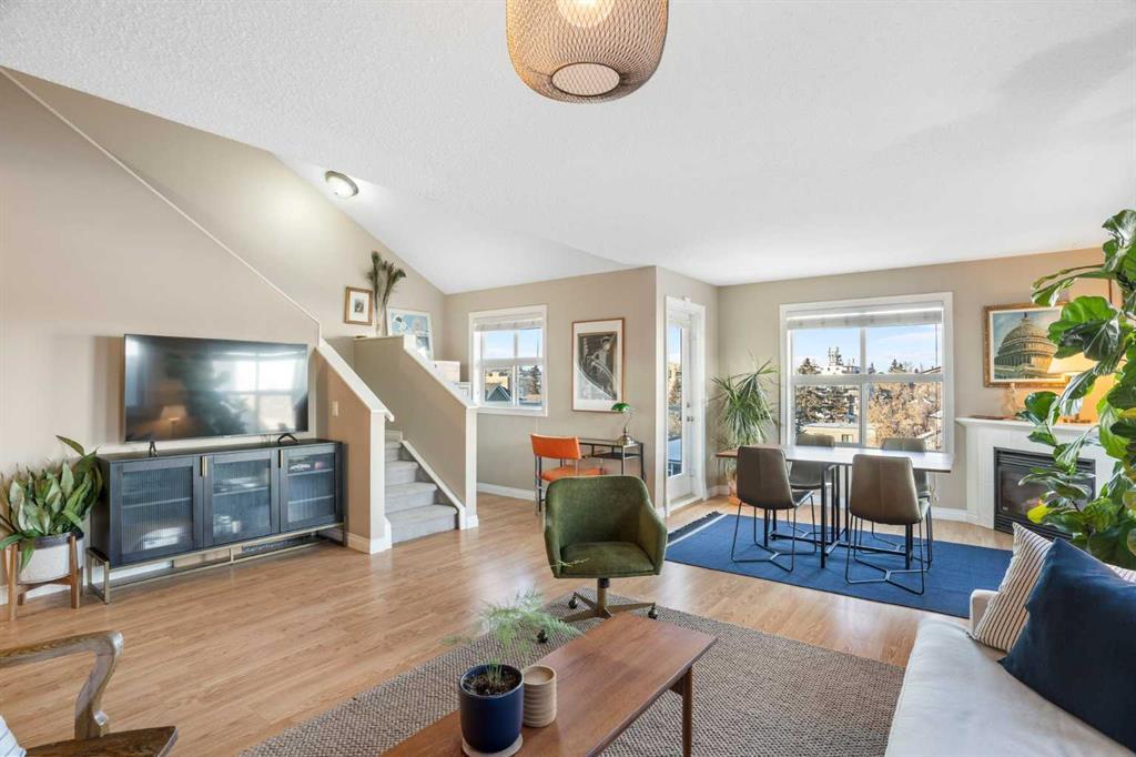 Welcome to the Delano in the well sought-after community of South Calgary! This exceptional two-storey loft penthouse offers over 1200 square feet of warmth and comfort. As you step inside, you’re greeted by the inviting ambiance of a truly open concept living space complete with large windows and vaulted ceilings filled with natural light. Whether you're sipping your morning coffee at your breakfast bar, cooking for yourself in a kitchen with lots of counter and storage space, or hosting a gathering of friends in the airy living and dining area, this will become your favorite new place to relax and entertain. Retreat to the primary bedroom, complete with a walk-through closet and 4-piece ensuite, where you can unwind and enjoy awesome views of downtown Calgary from your private balcony! A full 4-pc bathroom and in-unit laundry complete the main living area. Head upstairs to find a versatile loft; customize it to suit your needs – whether it be a second bedroom or a home office, this flexible space adapts to your lifestyle. This unit also comes with an underground titled parking stall and a separate storage unit. Up to two (2) cats or dogs are allowed upon written board approval with no size or weight restrictions. Investors, take note – this condo has all the makings of a fantastic rental opportunity! Located minutes from downtown, you’re also just a short distance from shopping centers, schools, parks and more. Book your private viewing while this one lasts!