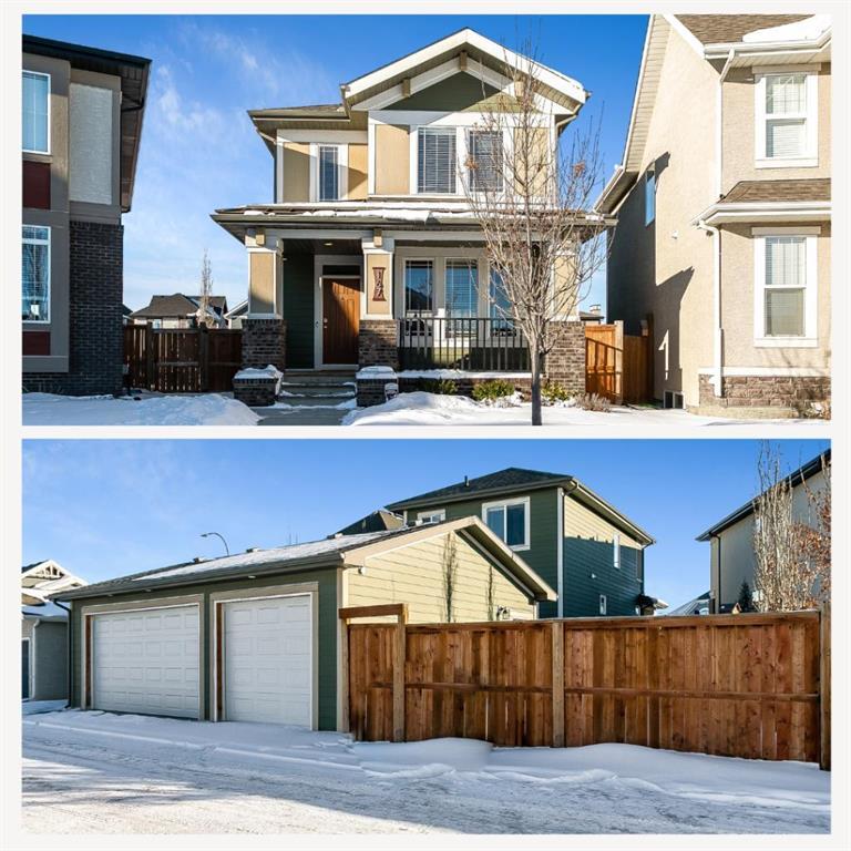 Situated on a large pie-shaped lot in a quiet cul-de-sac, this home offers many upgrades! A Hardie-board exterior, central AC, covered front porch and triple car garage with 10’ ceilings, epoxy flooring & rough-in for a future heater. 9’ ceilings and hardwood flooring welcome you into the open concept main floor. The kitchen comes complete with granite counters, timeless dark cabinets, stainless steel appliances, centred island with eating bar & ample cabinet/counter space. The dining room has ample space for a large table to accommodate family gatherings. The living room is complimented by a floor to ceiling tiled gas fireplace. The office nook & 2pc bathroom complete the main floor. Upstairs is home to 3 bedrooms, 2 bathrooms & a convenient laundry room. The master bedroom can accommodate king-sized furniture, has a walk-in closet & a 5pc ensuite featuring dual sinks, a soaker tub & glass shower. Both upper bathrooms feature granite counter tops. The basement is awaiting your personalized touch. The large pie-shaped lot is fully fenced, has a deck with gas line for optional BBQ or heater & has a large triple car garage. Mahogany features a 63-acre freshwater lake, two private beaches, and a nearby off-leash dog park, this community is perfect for the whole family. The abundance of amenities for year-round indoor and outdoor activities makes Mahogany the ideal community for active families. Enjoy easy access to schools, grocery stores, and major roadways like Deerfoot Trail and Stoney Trail.