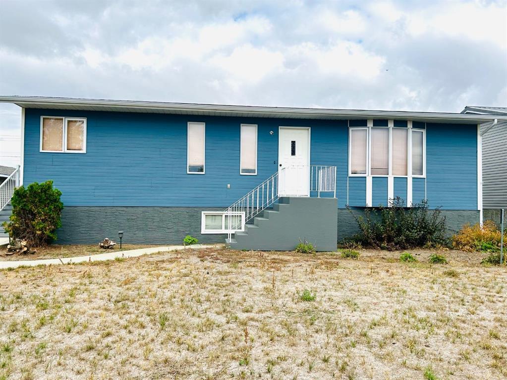 4 Bedroom, 3 Bath home located on a family friendly street in Oyen, AB! At 1232 square feet, this property has an open concept walk around floor plan. Main level has a front and side entrance. Side porch opens to a spacious area that has a large closet and hand washing sink. Conveniently placed main floor laundry room with extra storage. Kitchen is built around a corner with a view to the dining and living room. Living room is spacious with a bright south facing bay window with a view to the ball diamonds. The primary bedroom has his and her closet space, elongated windows, and a two piece ensuite. A large four piece bathroom sits adjacent to the second main level bedroom. Basement is fully finished with a large family room excellent for entertaining. The basement has two bedrooms and a 3 piece bath. A large cold room with built in shelving could second as additional storage. Property has large detached garage with a separate heated wood working area which is ideal for keeping all tools organized in one area. Back yard faces walking/running track, school, and playground. This home & garage have new asphalt shingles, repainted Masonite siding, new outdoor lights and soon to be new garage door. Situated on a desirable street within close proximity to golf course, ball diamonds, swimming pool, playground, school, and hospital. Book your showing today! This property is patiently waiting for its new owner.