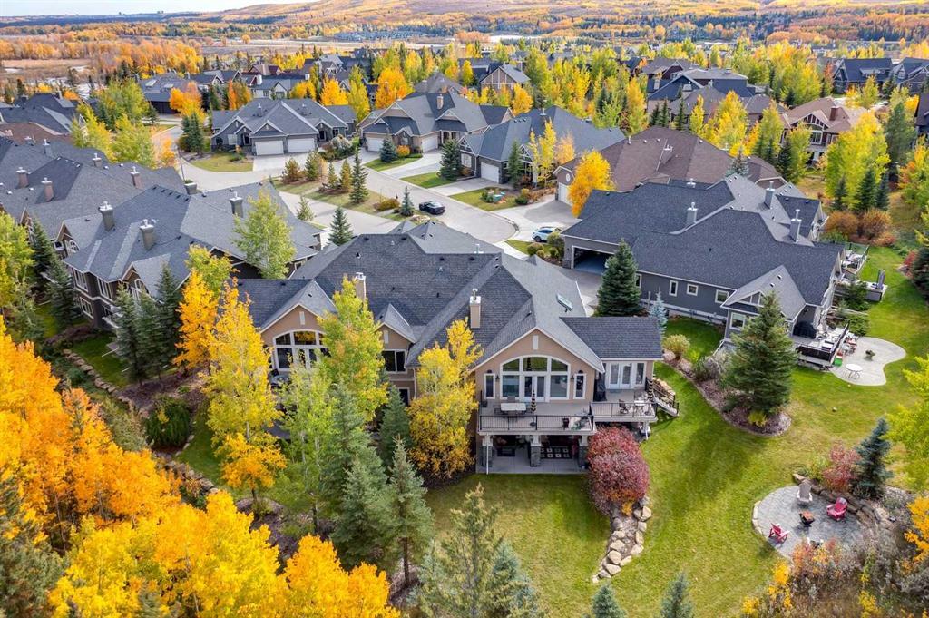 Perched at the very top of Elbow Valley Estates sits an outstanding “Knightsbridge” home on a corner lot backing onto the river valley and environmental reserve. Walk out your back door and you are immediately enjoying the extensive pathway system the community offers to its residents, year-round. This beautiful “maintenance free” property features over 4300 SF of luxurious living space and is situated on one of the most beautiful lots in this small quaint development. The rear of the home overlooks the gigantic yard and has a large deck that expands across the back of the house. The landscaping boasts rock garden walls, glorious hedges turning different colors throughout the seasons, perfectly manicured shrub gardens and a private firepit area framed by rock retaining walls and mature trees. The exterior features a grand natural stone covered entrance, a French Country curved window with classic shutters, a unique heavy wood front door, peaked roof designs, and massive stone posts with lovely, curved millwork detailing on the lower terrace area. The exterior has been constructed with plywood sheathing and is clad in natural stone accents and acrylic stucco. The millwork detailing from the dramatic architectural “wall of squares” to the interior windows between spaces to the “art gallery” stairwell make for an enriched living experience. The main floor has a formal dining area, a light-filled den boasting three walls of windows, a designer Chef’s kitchen, expansive vaulted ceilings and an elegant living room area with a sandstone wood-burning fireplace. The main floor primary suite has extensive built-ins and a luxurious ensuite with its own dressing table area. The lower-level entertaining space has a large family room area, a games area, another office that could be used as an exercise room, a fabulous wet-bar area, custom built-ins galore, two more bedrooms and two full bathrooms. This quality-built villa is a special home in a special location, boasting an incredible setting overlooking the forest area above the Glencoe Golf Course.