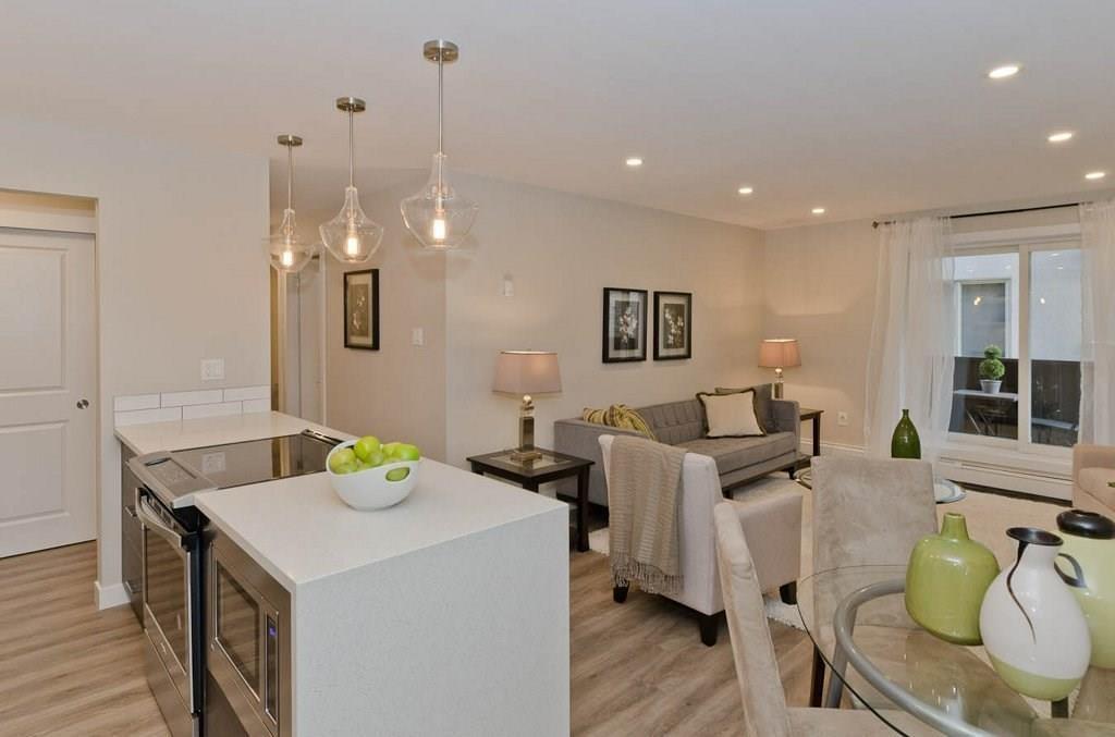 This completely renovated 2 bed 1 bath condo is centrally located in the heart of the Beltline. An open concept living space is perfect for entertaining and the designer kitchen boasts stainless steel appliances, built-in cabinetry, Quartz counter tops, a spacious island and subway tile detailing. Pot lights illuminate each corner while gorgeous updated flooring lines the unit from the entrance to the extra large private balcony. The primary bedroom is quite large, and the full bathroom includes a walk-in shower with product niche along with a bluetooth powered mirror. Take advantage of the in suite storage and deep closets. This truly is one of the best inner city locations, mere blocks away from 17th Ave, and a short walking distance to endless parks, the Stampede Grounds and river pathways.